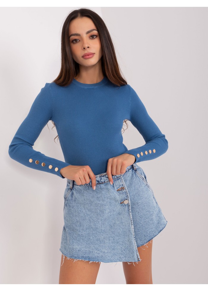 Dámsky pulóver, okrúhly výstrih, jemný rebrovaný úplet, ozdobné gombíky na rukávoch, modelka má na sebe veľkosť s/m, miery modelky: výška: 175 cm, prsia: 84 cm, pás: 61 cm, boky: 91 cm, rozmer produktu meraného na plocho, vo veľkosti s/m:, šírka pod plecami: 50 cm, dĺžka rukáva: 64 cm, celková dĺžka: 64 cm.