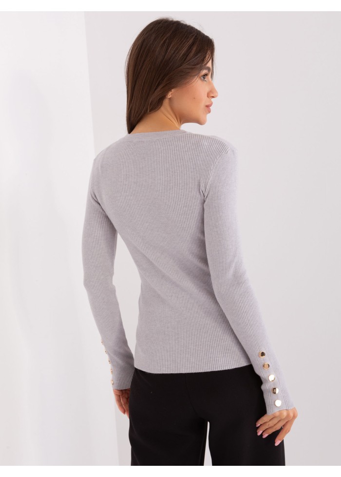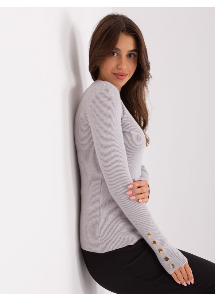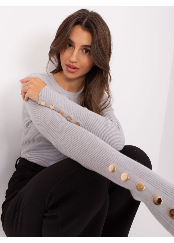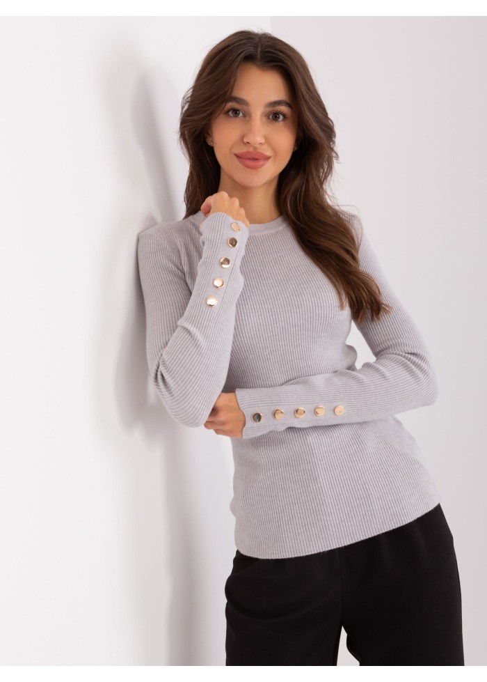 Dámsky pulóver, okrúhly výstrih, jemný rebrovaný úplet, ozdobné gombíky na rukávoch, modelka má na sebe veľkosť s/m, miery modelky: výška: 175 cm, prsia: 84 cm, pás: 61 cm, boky: 91 cm, rozmer produktu meraného na plocho, vo veľkosti s/m:, šírka pod plecami: 50 cm, dĺžka rukáva: 64 cm, celková dĺžka: 64 cm.