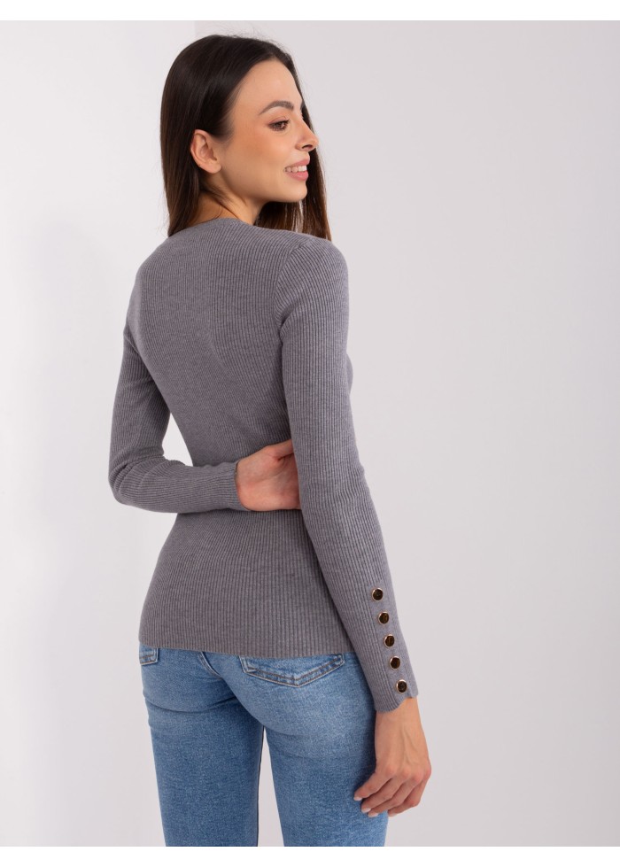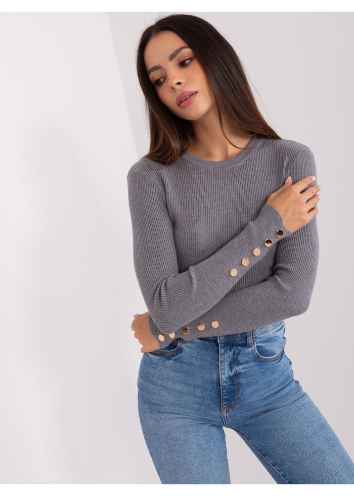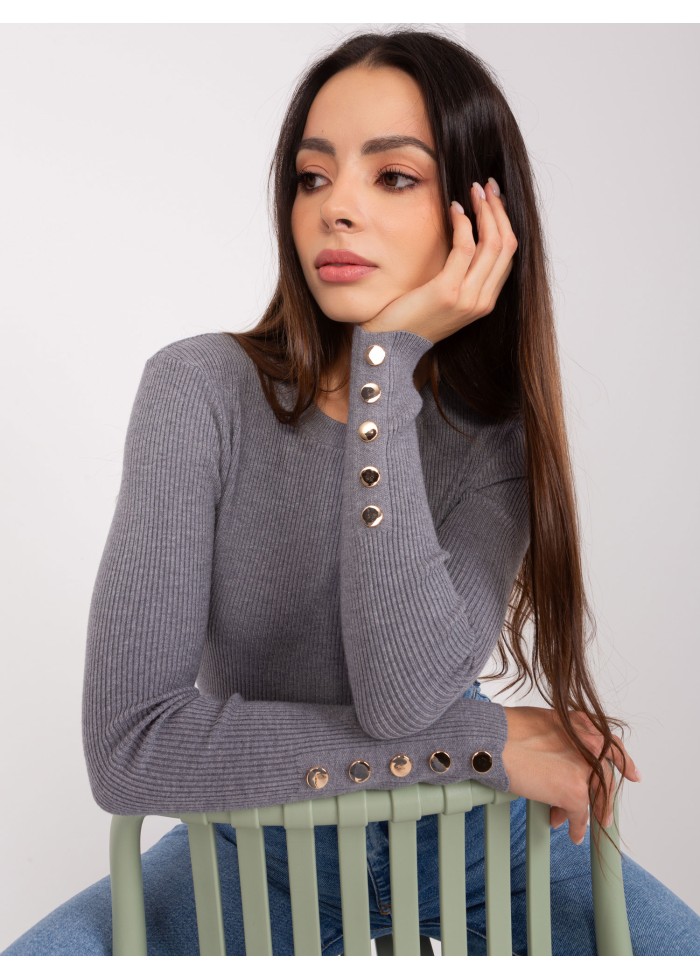 Dámsky pulóver, okrúhly výstrih, jemný rebrovaný úplet, ozdobné gombíky na rukávoch, modelka má na sebe veľkosť s/m, miery modelky: výška: 175 cm, prsia: 84 cm, pás: 61 cm, boky: 91 cm, rozmer produktu meraného na plocho, vo veľkosti s/m:, šírka pod plecami: 50 cm, dĺžka rukáva: 64 cm, celková dĺžka: 64 cm.
