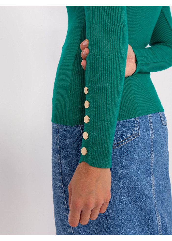 Dámsky pulóver, okrúhly výstrih, jemný rebrovaný úplet, ozdobné gombíky na rukávoch, modelka má na sebe veľkosť s/m, miery modelky: výška: 175 cm, prsia: 84 cm, pás: 61 cm, boky: 91 cm, rozmer produktu meraného na plocho, vo veľkosti s/m:, šírka pod plecami: 50 cm, dĺžka rukáva: 64 cm, celková dĺžka: 64 cm.