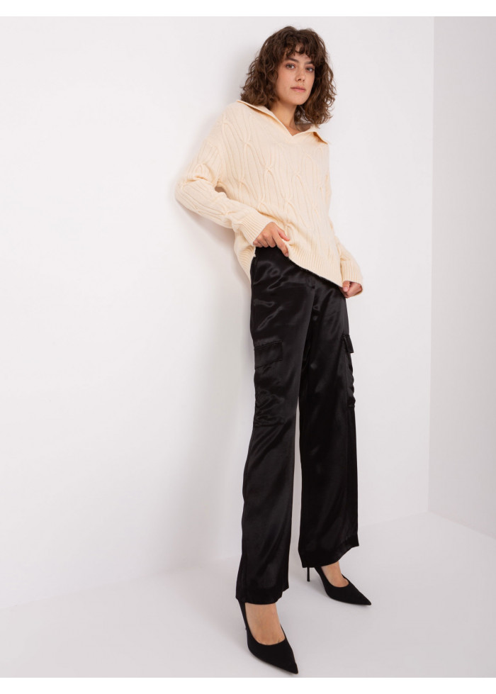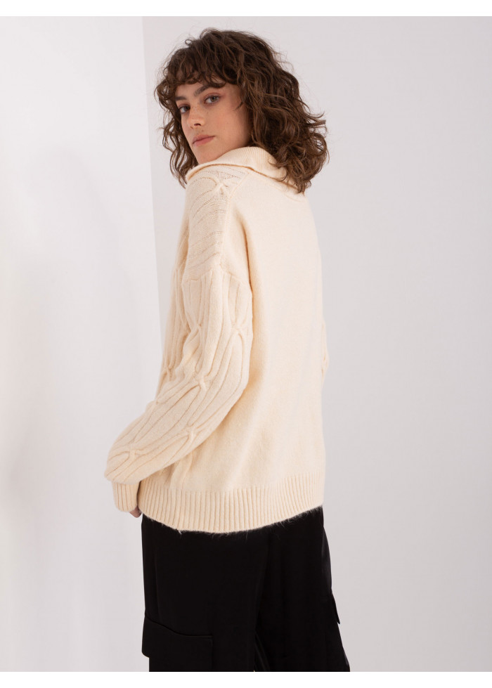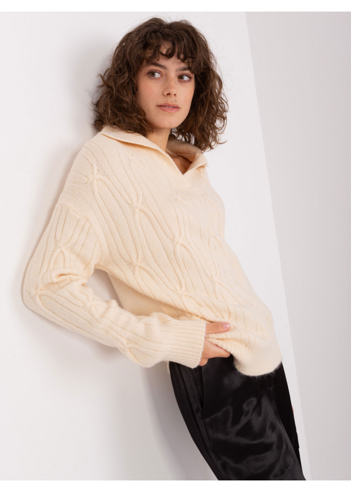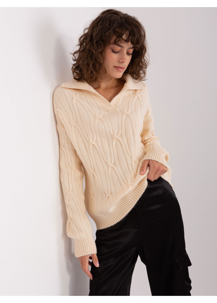 Dámsky pulóver, dámsky sveter s golierom, výstrih do v, pletený vzor, melírovaná štruktúra, univerzálna veľkosť, miery modelky: výška: 177 cm, prsia: 84 cm, pás: 62 cm, boky: 89 cm, rozmer produktu meraného na plocho:, šírka pod plecami: 70 cm, dĺžka rukáva: 68 cm, celková dĺžka: 60 cm.