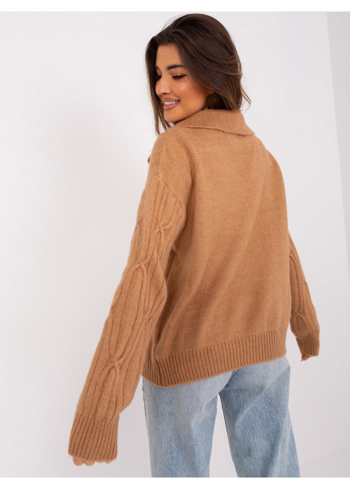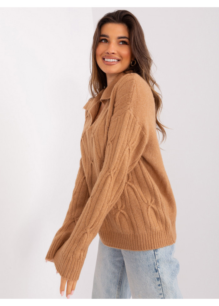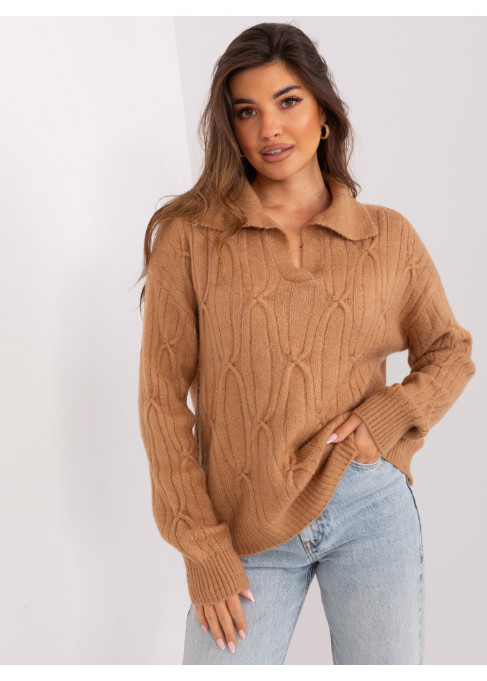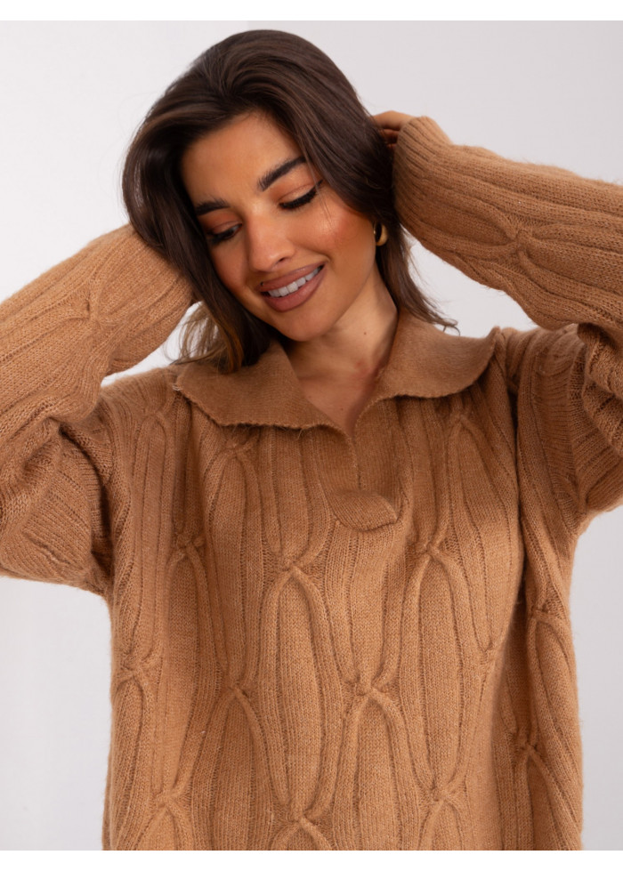 Dámsky pulóver, dámsky sveter s golierom, výstrih do v, pletený vzor, melírovaná štruktúra, univerzálna veľkosť, miery modelky: výška: 177 cm, prsia: 84 cm, pás: 62 cm, boky: 89 cm, rozmer produktu meraného na plocho:, šírka pod plecami: 70 cm, dĺžka rukáva: 68 cm, celková dĺžka: 60 cm.