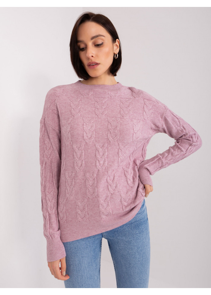 Dámsky pulóver, jemný úplet, pletený vzor, univerzálna veľkosť, miery modelky: výška: 177 cm, prsia: 84 cm, pás: 62 cm, boky: 89 cm, rozmer produktu meraného na plocho:, šírka pod plecami: 50 cm, dĺžka rukáva: 60 cm, celková dĺžka: 61 cm.