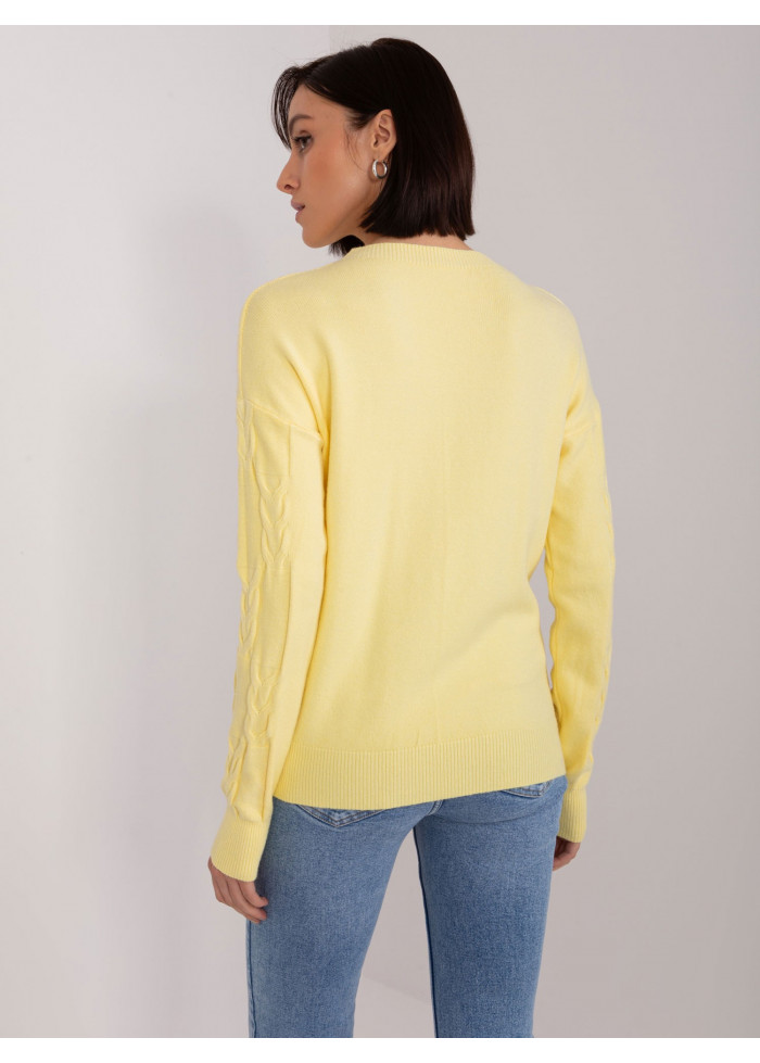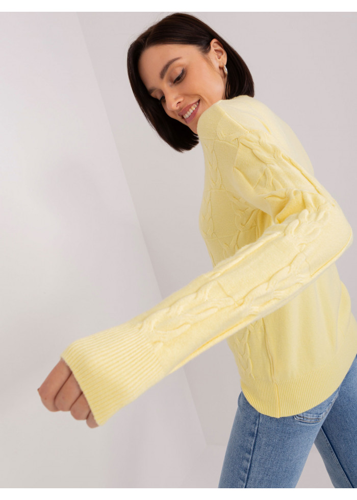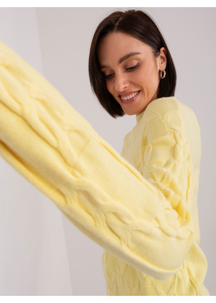 Dámsky pulóver, jemný úplet, pletený vzor, univerzálna veľkosť, miery modelky: výška: 177 cm, prsia: 84 cm, pás: 62 cm, boky: 89 cm, rozmer produktu meraného na plocho:, šírka pod plecami: 50 cm, dĺžka rukáva: 60 cm, celková dĺžka: 61 cm.