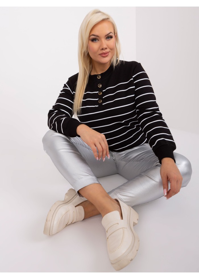 Dámsky pulóver z jemného úpletu, okrúhly výstrih, ozdobné gombíky, pruhovaný dizajn, lémy na konci rukávov, univerzálna veľkosť, miery modelky: výška 172 cm, prsia 103 cm, pás 73 cm, boky 103 cm., rozmer produktu meraného na plocho:, šírka pod plecami: 58 cm, dĺžka rukáva: 58 cm, celková dĺžka: 60 cm.