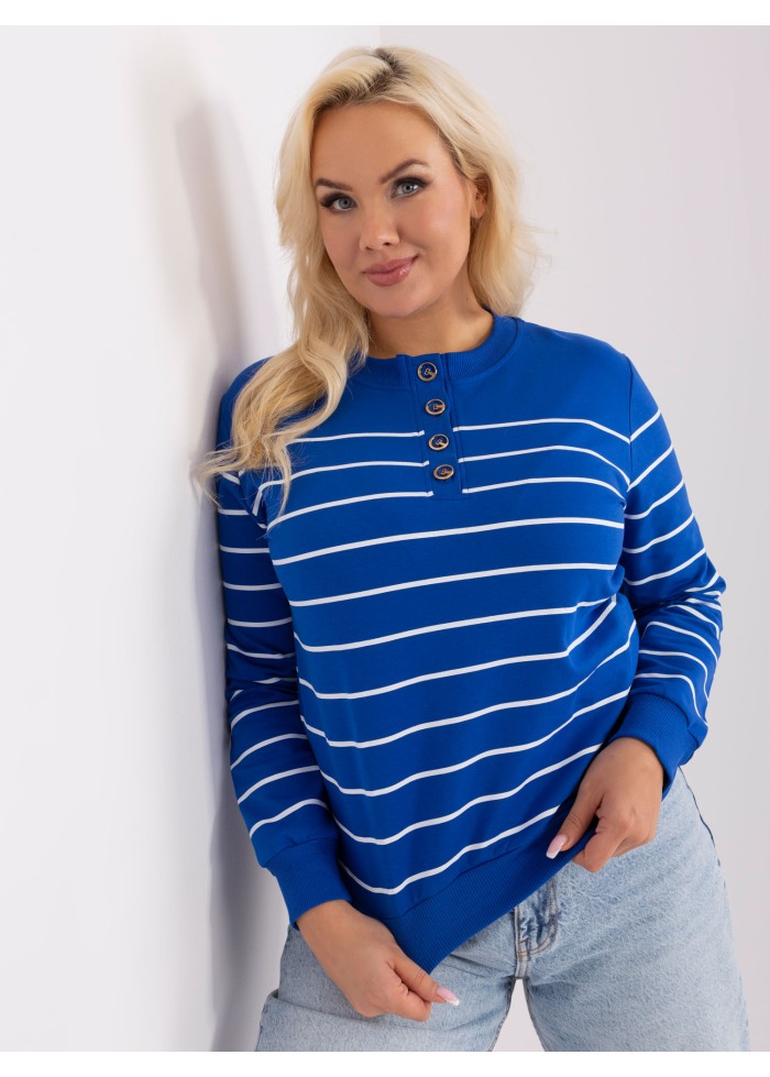 Dámsky pulóver z jemného úpletu, okrúhly výstrih, ozdobné gombíky, pruhovaný dizajn, lémy na konci rukávov, univerzálna veľkosť, miery modelky: výška 172 cm, prsia 103 cm, pás 73 cm, boky 103 cm., rozmer produktu meraného na plocho:, šírka pod plecami: 58 cm, dĺžka rukáva: 58 cm, celková dĺžka: 60 cm.