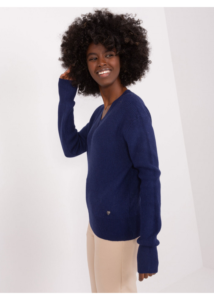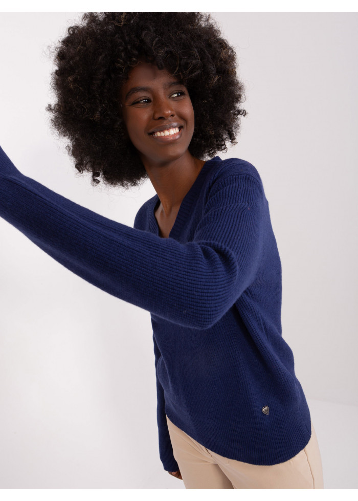 Dámsky pulóver, jemný rebrovaný úplet, výstrih do v, ozdobné lémy na rukávoch, modelka má na sebe veľkosť m/l, miery modelky: výška 176 cm, prsia 85 cm, pás 64 cm, boky 92 cm, rozmer produktu meraného na plocho, vo veľkosti m/l:, šírka pod plecami: 55 cm, dĺžka rukáva: 62 cm, celková dĺžka: 55 cm.