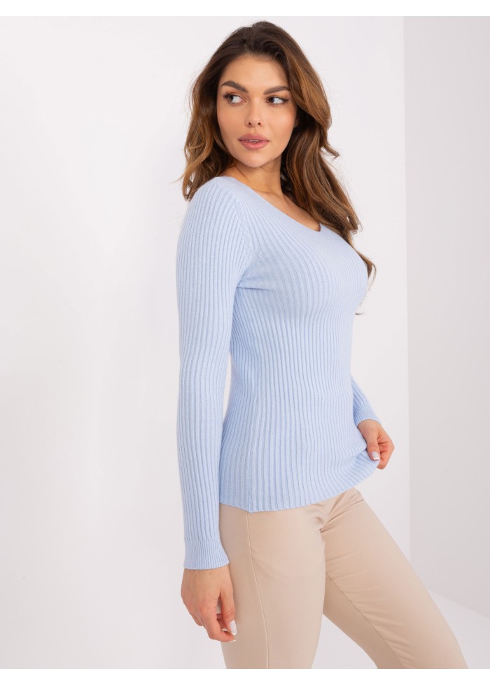 Dámsky pulóver, rebrovaný úplet, výstrih do v, univerzálna veľkosť, miery modelky: výška: 173 cm, prsia: 85 cm, pás: 62 cm, boky: 95 cm, rozmer produktu meraného na plocho:, šírka pod plecami: 39 cm, dĺžka rukáva: 56 cm, celková dĺžka: 56 cm.