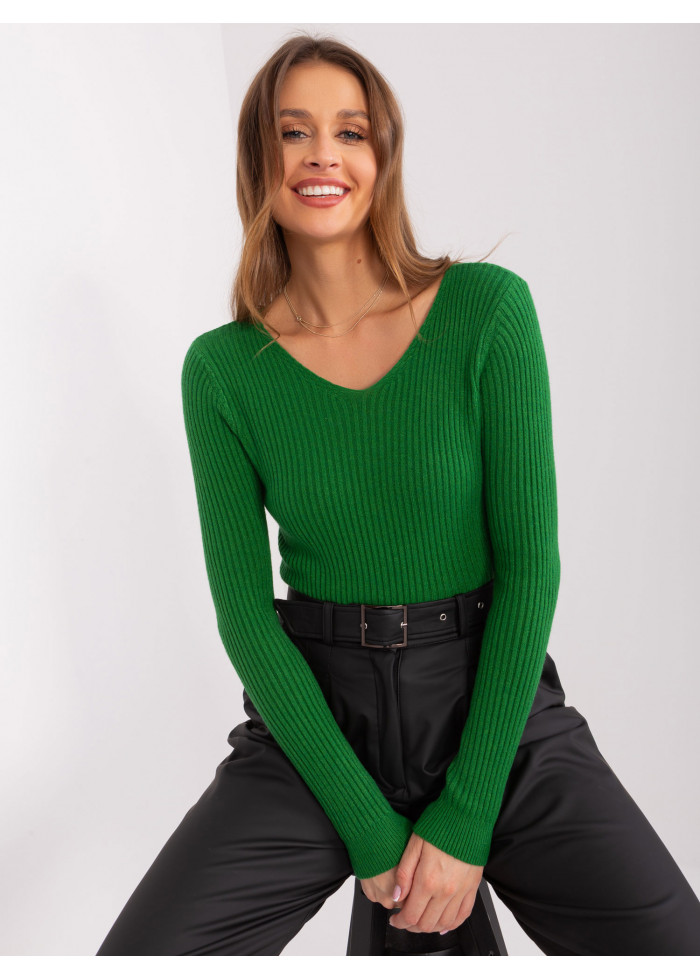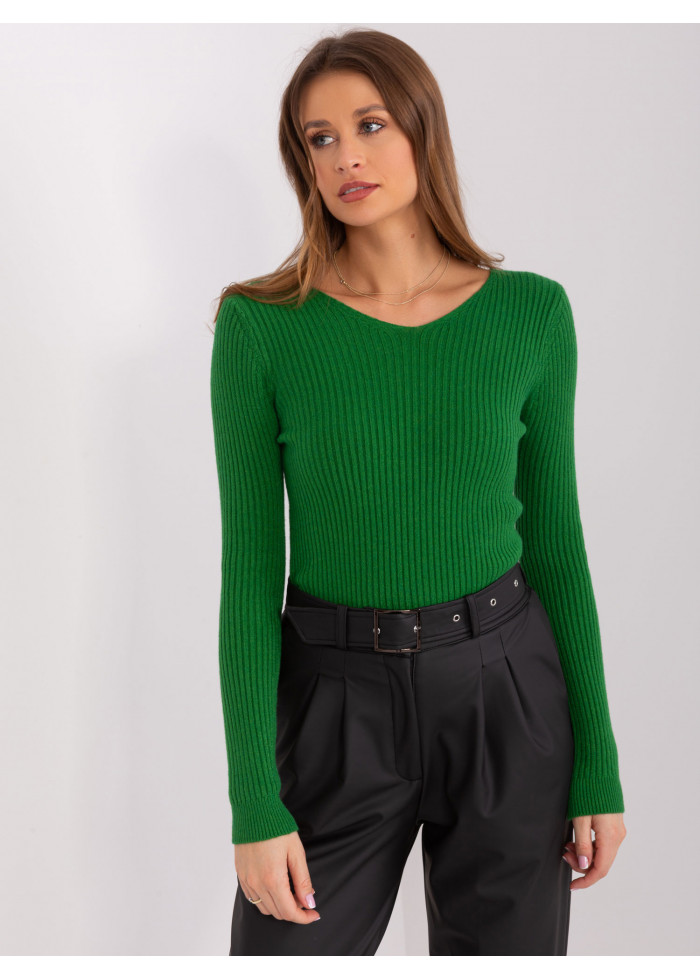 Dámsky pulóver, rebrovaný úplet, výstrih do v, univerzálna veľkosť, miery modelky: výška: 173 cm, prsia: 85 cm, pás: 62 cm, boky: 95 cm, rozmer produktu meraného na plocho:, šírka pod plecami: 39 cm, dĺžka rukáva: 56 cm, celková dĺžka: 56 cm.