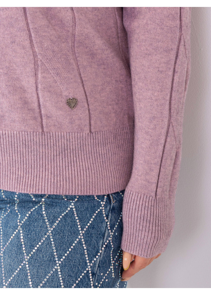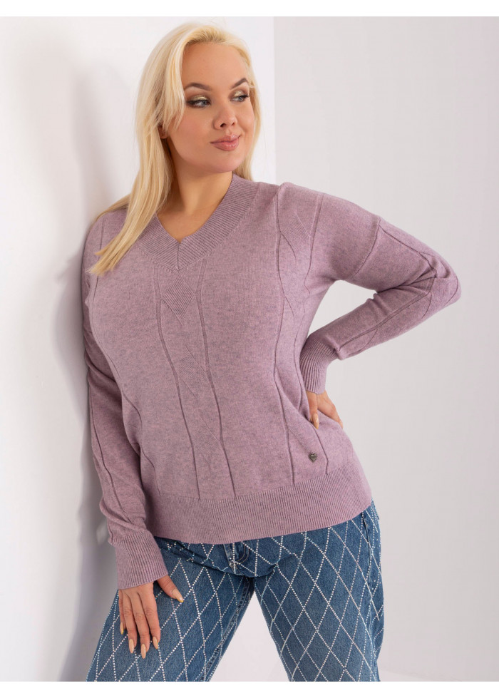 Dámsky pulóver z jemného úpletu, pletený vzor, výstrih do v, jemné sťahujúce lémy na koncoch rukávov a v spodnej časti, ozdobná aplikácia, modelka má na sebe veľkosť xl/xxl. miery modelky: výška: 172 cm, prsia: 103 cm, pás: 73 cm, boky: 103 cm, rozmer produktu meraného na plocho, vo veľkosti xl/xxl: šírka pod plecami: 54 cm, dĺžka rukáva: 62 cm, celková dĺžka: 61 cm.
