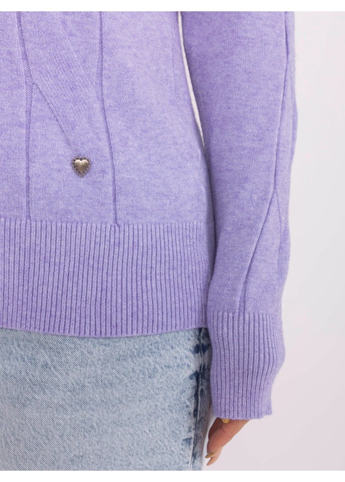 Dámsky pulóver z jemného úpletu, pletený vzor, výstrih do v, jemné sťahujúce lémy na koncoch rukávov a v spodnej časti, ozdobná aplikácia, modelka má na sebe veľkosť xl/xxl. miery modelky: výška: 172 cm, prsia: 103 cm, pás: 73 cm, boky: 103 cm, rozmer produktu meraného na plocho, vo veľkosti xl/xxl: šírka pod plecami: 54 cm, dĺžka rukáva: 62 cm, celková dĺžka: 61 cm.