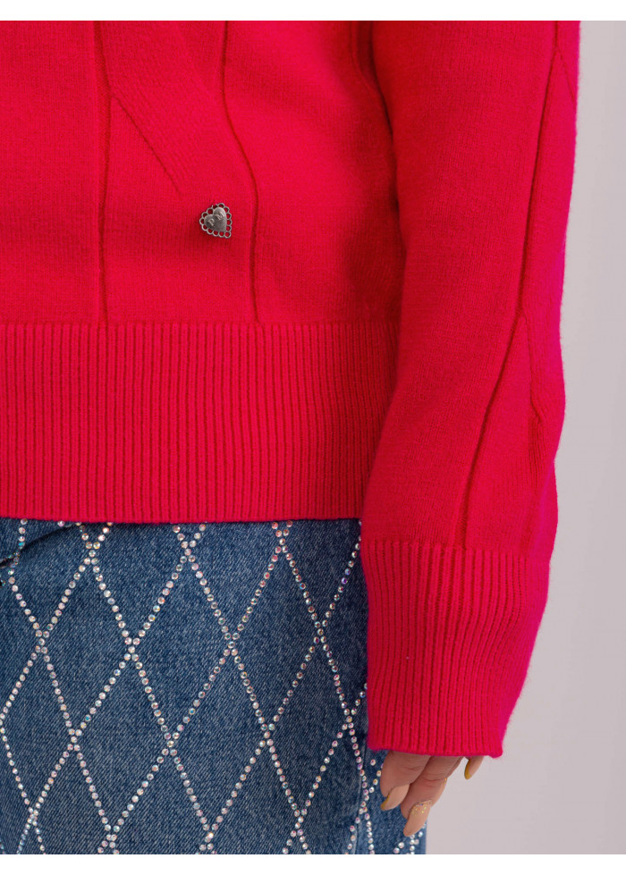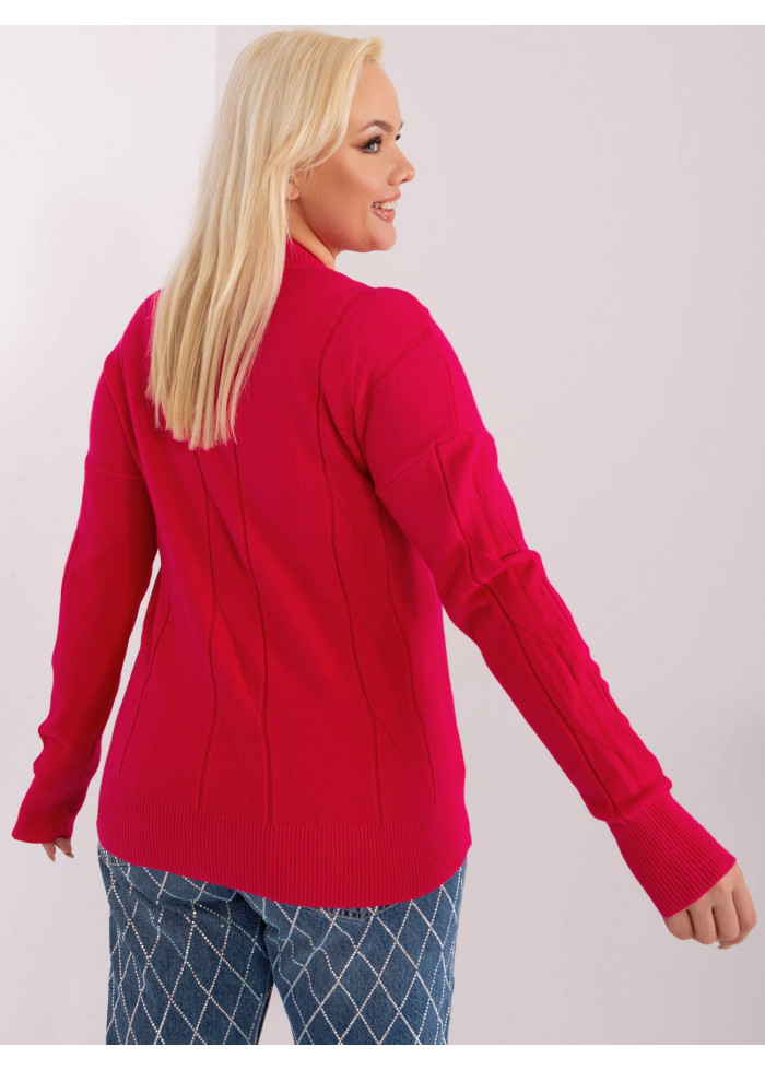 Dámsky pulóver z jemného úpletu, pletený vzor, výstrih do v, jemné sťahujúce lémy na koncoch rukávov a v spodnej časti, ozdobná aplikácia, modelka má na sebe veľkosť xl/xxl. miery modelky: výška: 172 cm, prsia: 103 cm, pás: 73 cm, boky: 103 cm, rozmer produktu meraného na plocho, vo veľkosti xl/xxl: šírka pod plecami: 54 cm, dĺžka rukáva: 62 cm, celková dĺžka: 61 cm.