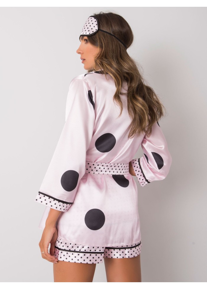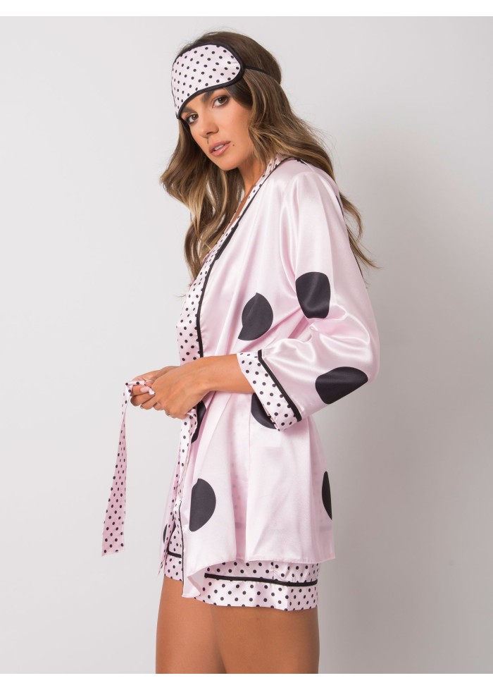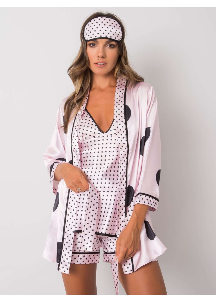 Lesklý pyžamový set, tielko na ramienka, kraťasy, župan s opaskom, čelenka na oči v rovnakej farbe, spôsob prania: pranie v práčke na 30°c, materiál: 100% polyester, modelka má na sebe veľkosť s, miery modelky: výška: 175 cm, prsia: 85 cm, pás: 65 cm, boky: 89 cm.