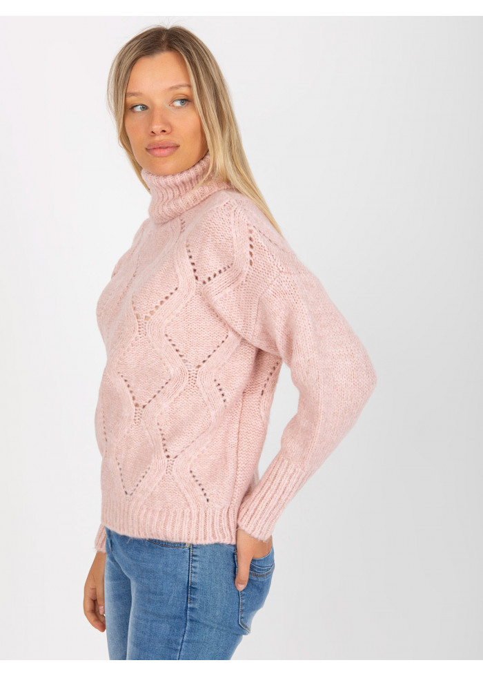 Dámsky pletený rolák, zaujímavý vzor, priesvitné očká, vysoké náplety na rukávoch, spôsob prania: pranie v práčke na 30°c, materiál: 100% akryl, univerzálna veľkosť, miery modelky: výška: 178 cm, prsia: 89 cm, pás: 65 cm, boky: 95 cm, rozmer produktu meraného na plocho:, šírka pod plecami: 60 cm, dĺžka rukáva: 58 cm, celková dĺžka: 57 cm.