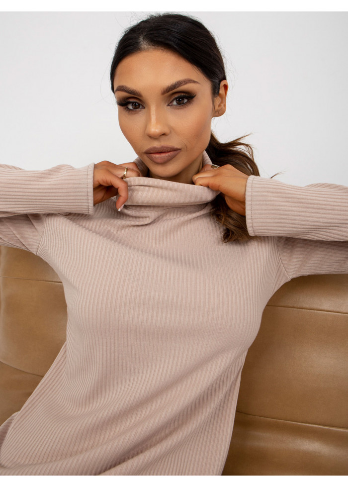 Dámsky rebrovaný rolák, jednoduchý strih, univerzálna veľkosť, miery modelky: výška: 168 cm, prsia: 89 cm, pás: 60 cm, boky: 91 cm, rozmer produktu meraného na plocho:, šírka pod plecami: 47 cm, dĺžka rukáva: 60 cm, celková dĺžka: 64 cm.