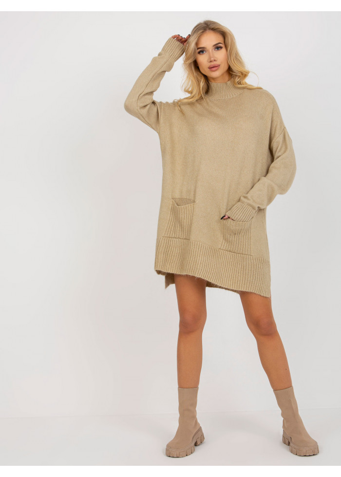 Dámsky predĺžený rolák, dámske minišaty, jemný úplet, 2 vrecká, univerzálna veľkosť, miery modelky: výška 175 cm, prsia 84 cm, pás 62 cm, boky 93 cm., rozmer produktu meraného na plocho:, šírka pod plecami: 66 cm, dĺžka rukáva: 65 cm, celková dĺžka: 84 cm.