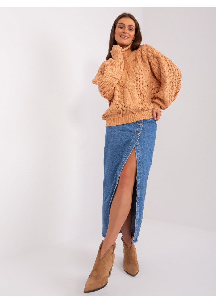 Dámsky pletený rolák, oversize strih, univerzálna veľkosť, miery modelky: výška: 175 cm, prsia: 90 cm, pás: 66 cm, boky: 94 cm, rozmer produktu meraného na plocho:, šírka pod plecami: 80 cm, dĺžka rukáva: 68 cm, celková dĺžka: 60 cm.