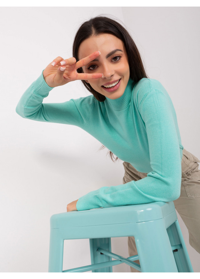 Dámsky polorolák, jemný úplet, modelka má na sebe veľkosť s/m, miery modelky: 173 cm, prsia: 90 cm, pás: 64 cm, boky: 93 cm, rozmer produktu meraného na plocho, vo veľkosti s/m:, šírka pod plecami: 55 cm, dĺžka rukáva: 67 cm, celková dĺžka: 60 cm.