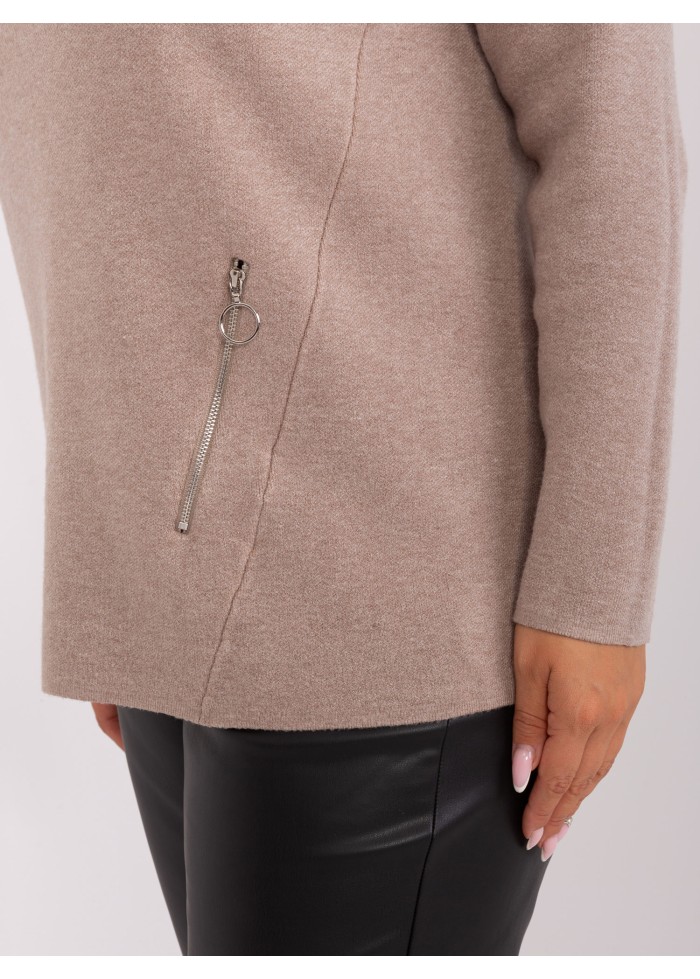 Dámsky polorolák, jemný úplet, 2 vrecká na zips, modelka má na sebe veľkosť xl/xxl. miery modelky: výška: 172 cm, prsia: 103 cm, pás: 73 cm, boky: 103 cm, rozmer produktu, meraného na plocho, vo veľkosti xl/xxl:, šírka pod plecami: 65 cm, dĺžka rukáva: 60 cm, celková dĺžka: 74 cm.