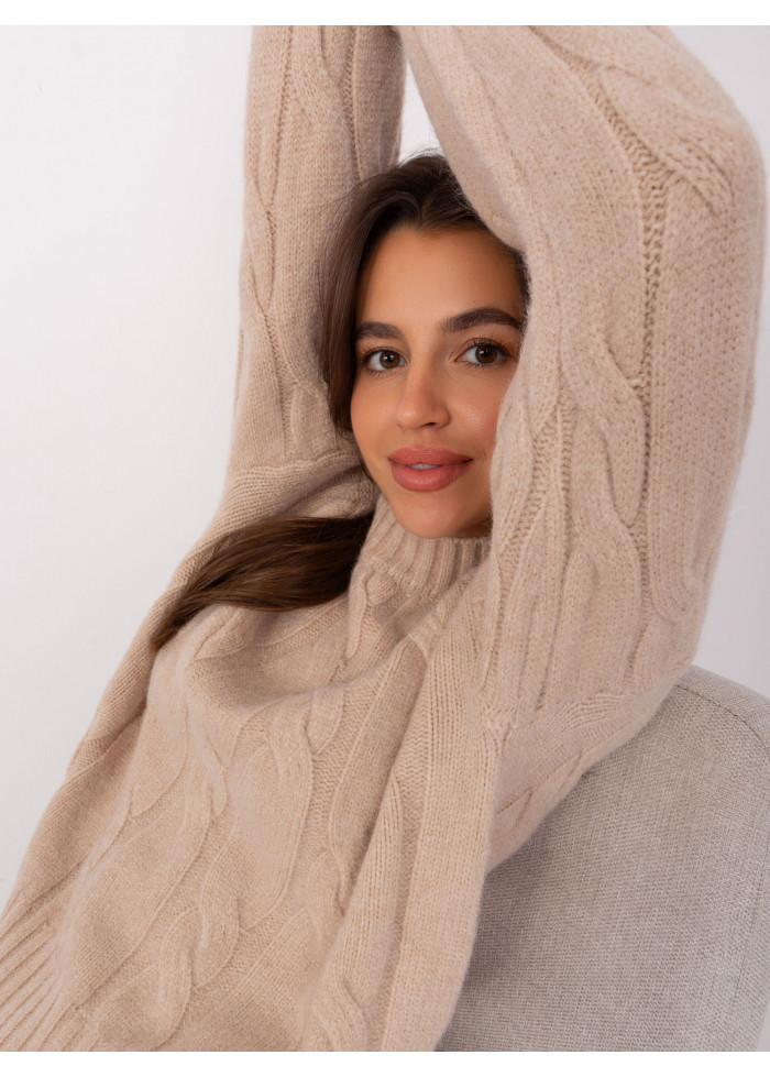 Dámsky polorolák, pletený vzor, jemný úplet, univerzálna veľkosť, miery modelky: výška: 172 cm, prsia: 88 cm, pás: 63 cm, boky: 92 cm, rozmer produktu meraného na plocho:, šírka pod plecami: 65 cm, dĺžka rukáva: 64 cm, celková dĺžka: 55 cm.