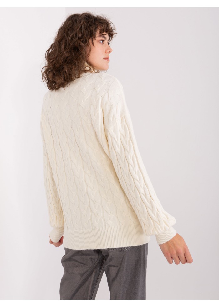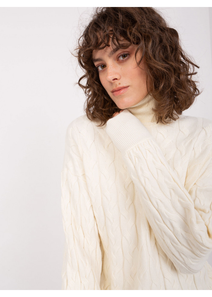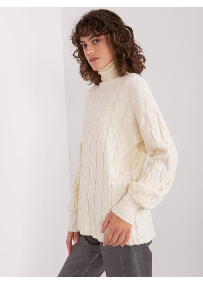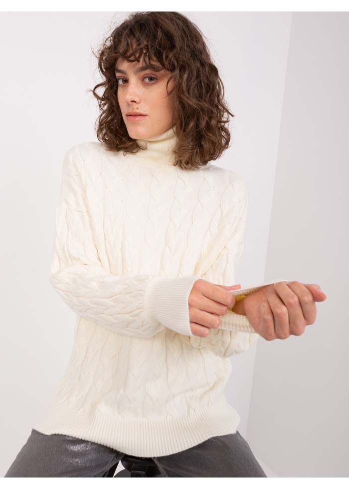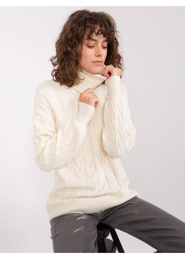 Dámsky pletený rolák, zaujímavý pletený vzor, vysoké náplety na rukávoch, univerzálna veľkosť, miery modelky: výška: 178 cm, prsia: 90 cm, pás: 62 cm, boky: 94 cm, rozmer produktu meraného na plocho:, šírka pod plecami: 51 cm, dĺžka rukáva: 61 cm, celková dĺžka: 64 cm.