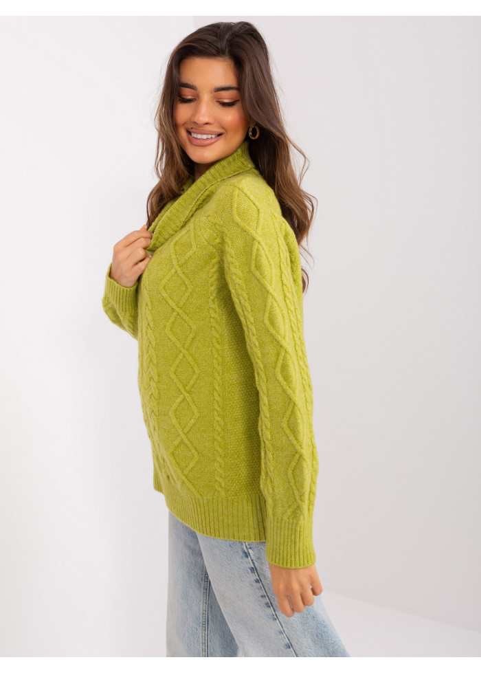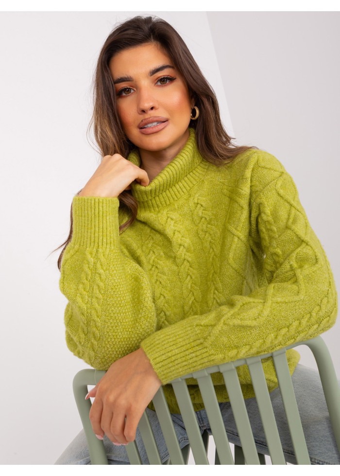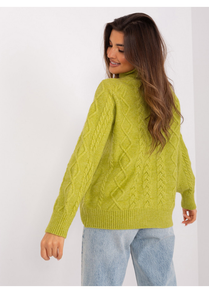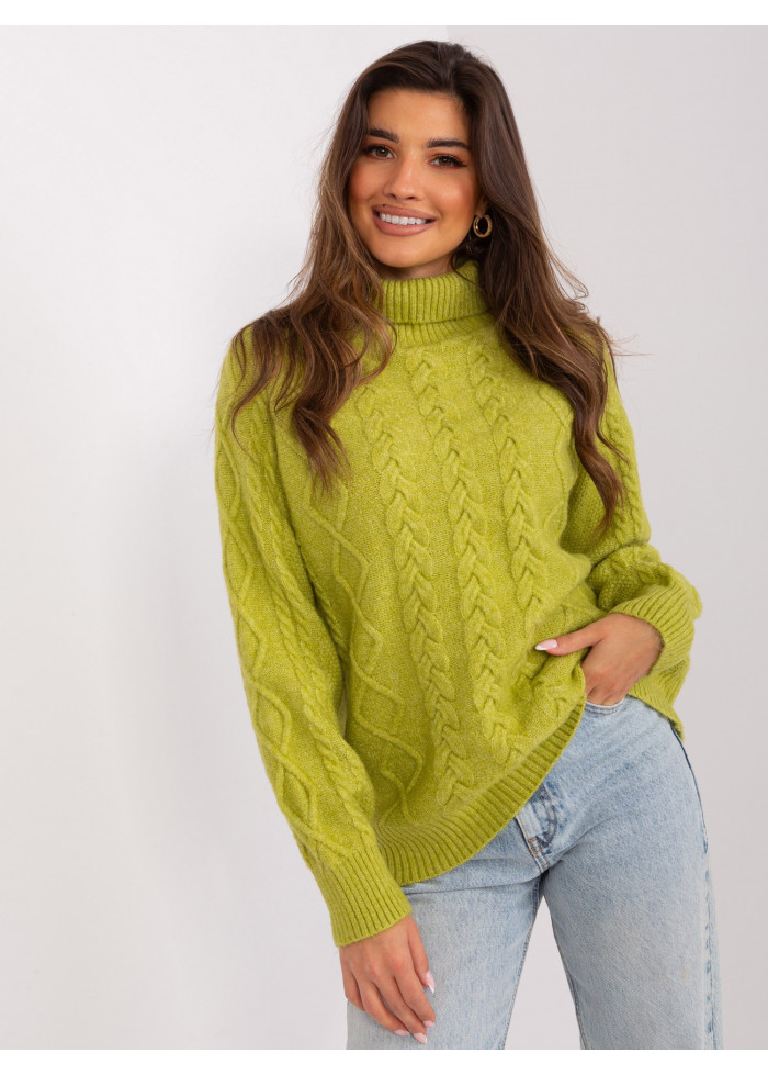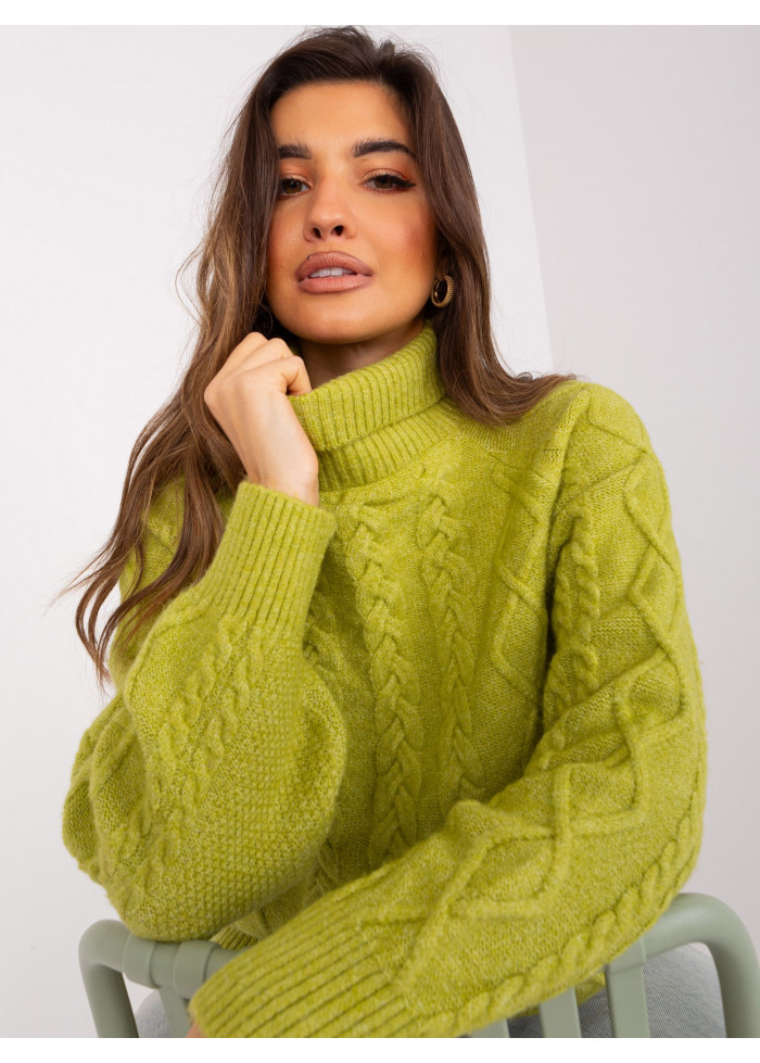 Dámsky pletený rolák, jendoduchý voľný strih, zaujímavý pletený vzor, univerzálna veľkosť, miery modelky: výška: 178 cm, prsia: 80 cm, pás: 58 cm, boky: 88 cm, rozmer produktu meraného na plocho:, šírka pod plecami: 70 cm, dĺžka rukáva: 60 cm, celková dĺžka: 67 cm.
