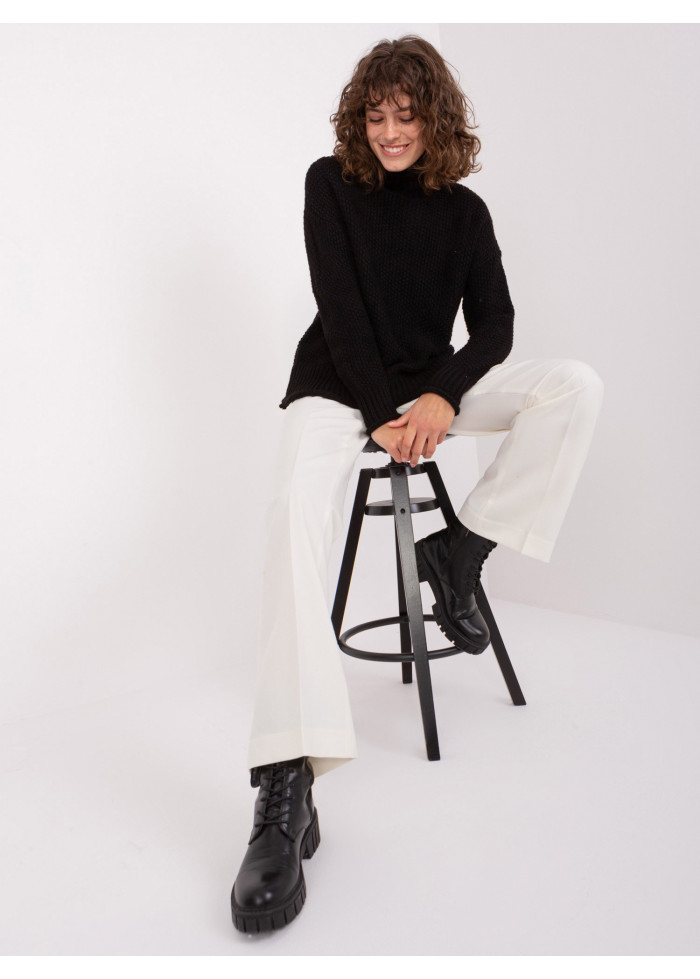 Dámsky pletený rolák, vysoké náplety na rukávoch, jednoduchý voľnejší strih, univerzálna veľkosť, miery modelky: výška: 177 cm, prsia: 84 cm, pás: 62 cm, boky: 89 cm, rozmer produktu meraného na plocho:, šírka pod plecami: 70 cm, dĺžka rukáva: 62 cm, celková dĺžka: 61 cm.