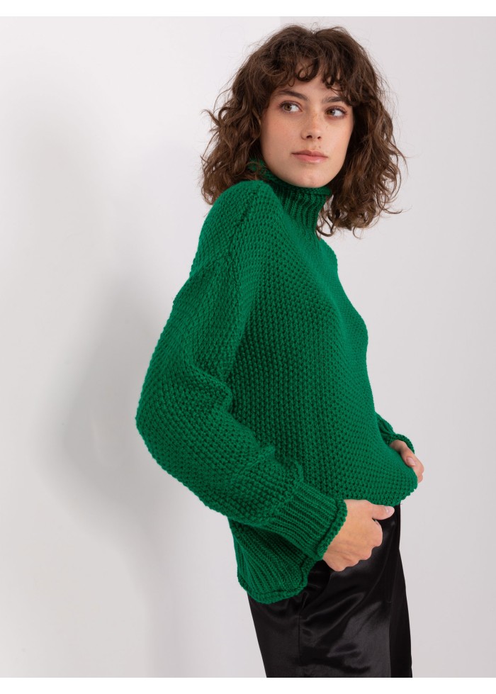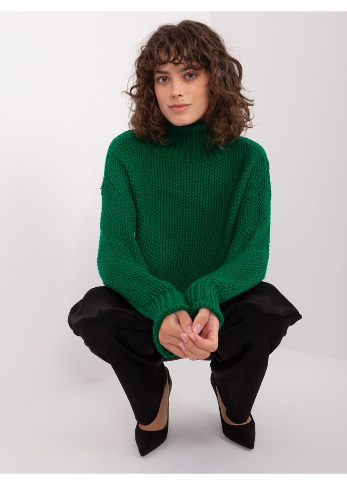 Dámsky pletený rolák, vysoké náplety na rukávoch, jednoduchý voľnejší strih, univerzálna veľkosť, miery modelky: výška: 177 cm, prsia: 84 cm, pás: 62 cm, boky: 89 cm, rozmer produktu meraného na plocho:, šírka pod plecami: 70 cm, dĺžka rukáva: 62 cm, celková dĺžka: 61 cm.