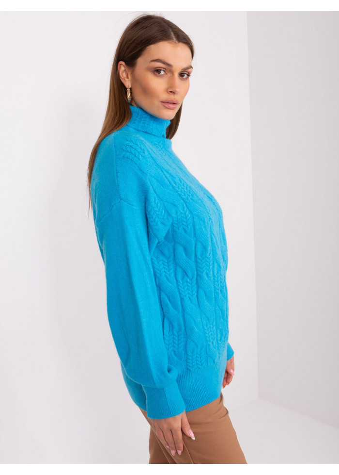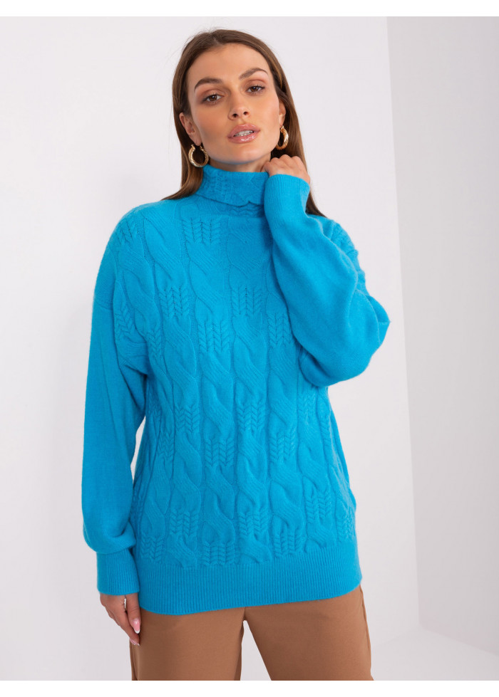 Dámsky pletený rolák, pletený vzor v prednej časti, lémy na konci rukávov, univerzálna veľkosť, miery modelky: výška 170 cm, prsia 93 cm, pás 66 cm, boky 93 cm., rozmer produktu meraného na plocho:, šírka pod plecami: 52 cm, dĺžka rukáva: 59 cm, celková dĺžka: 64 cm.