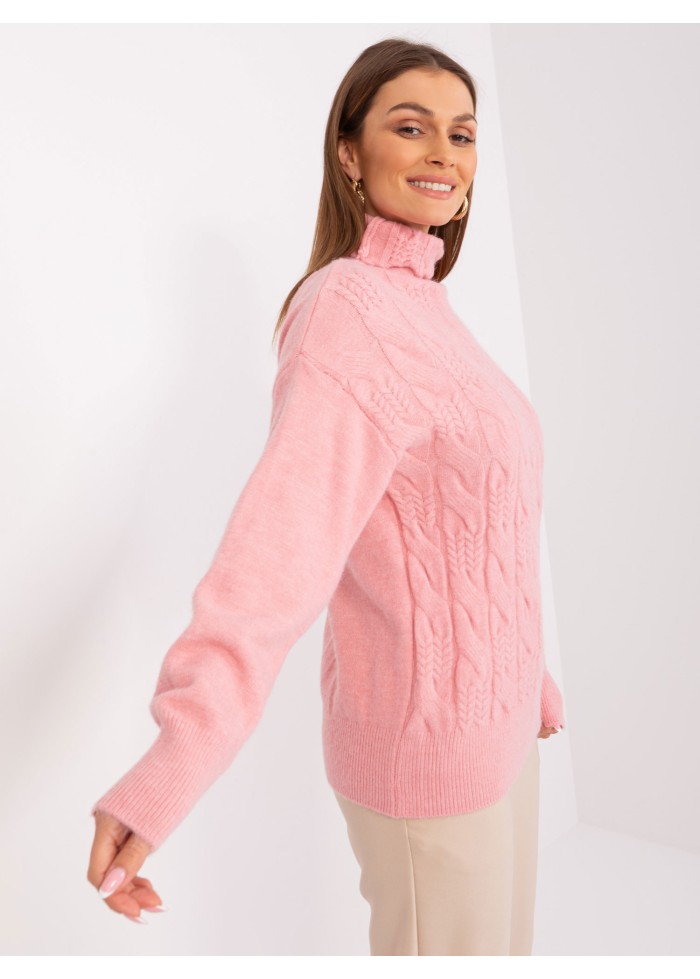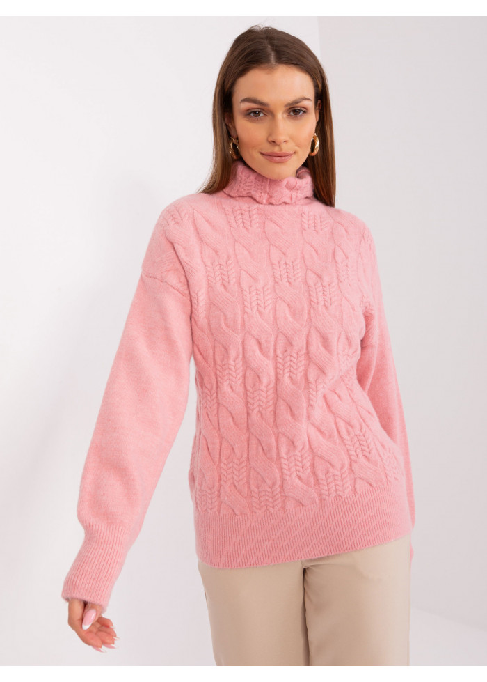 Dámsky pletený rolák, pletený vzor v prednej časti, lémy na konci rukávov, univerzálna veľkosť, miery modelky: výška 170 cm, prsia 93 cm, pás 66 cm, boky 93 cm., rozmer produktu meraného na plocho:, šírka pod plecami: 52 cm, dĺžka rukáva: 59 cm, celková dĺžka: 64 cm.