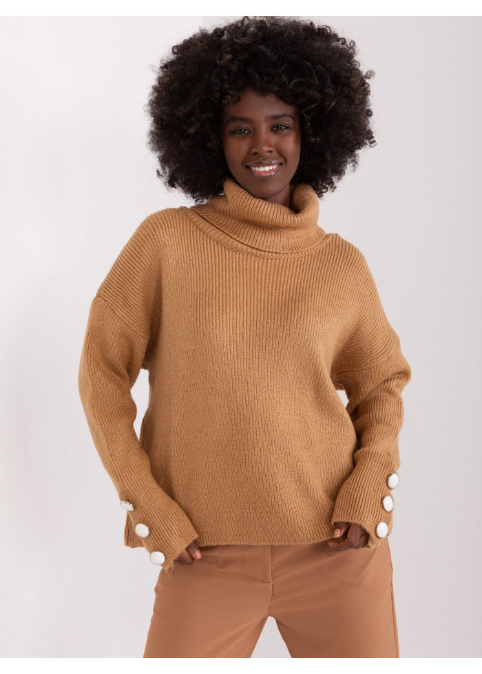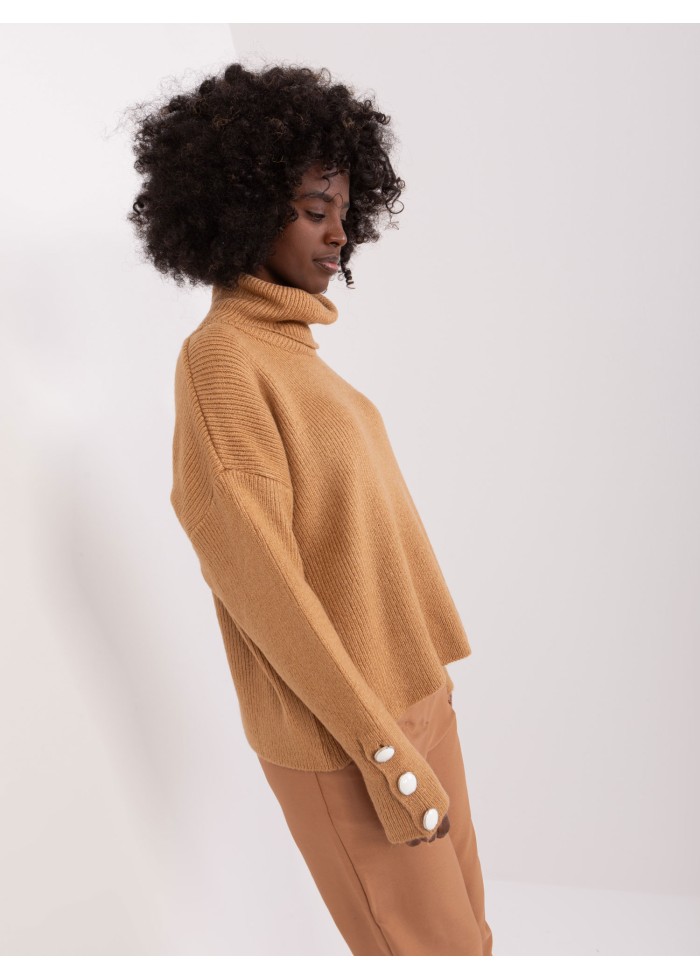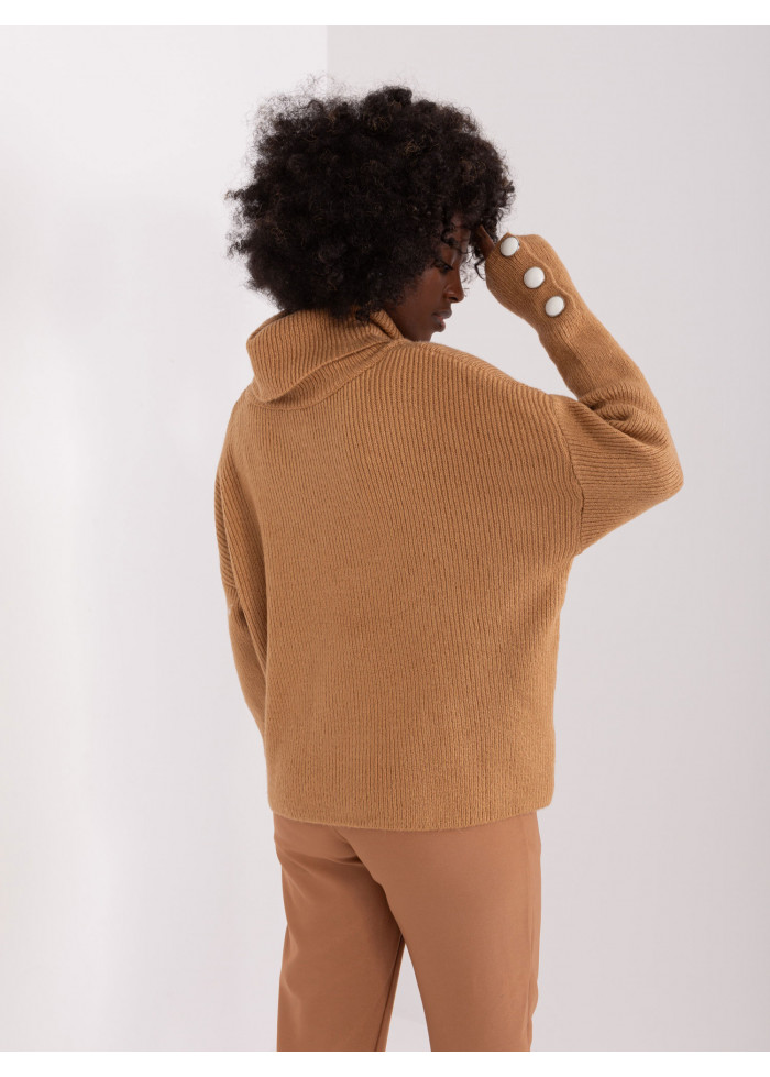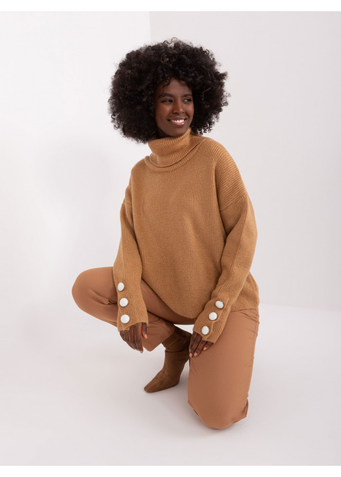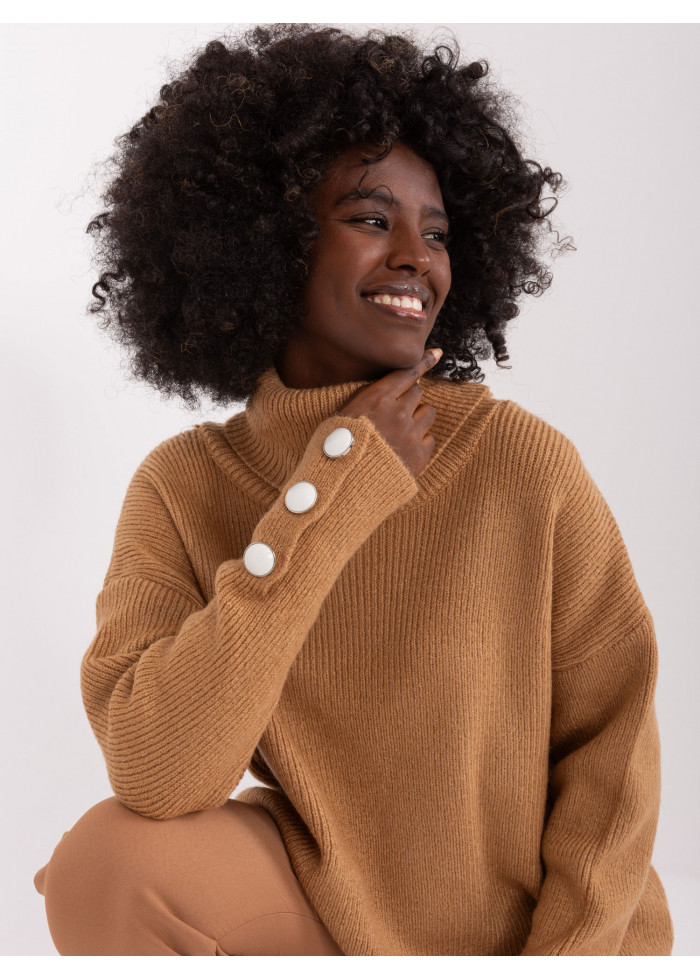 Dámsky rolák, jemný rebrovaný úplet, ozdobné gombíky na rukávoch, univerzálna veľkosť, miery modelky: výška: 168 cm, prsia: 82 cm, pás: 62 cm, boky: 93 cm, rozmer produktu meraného na plocho:, šírka pod plecami: 61 cm, dĺžka rukáva: 61 cm, celková dĺžka: 51 cm.