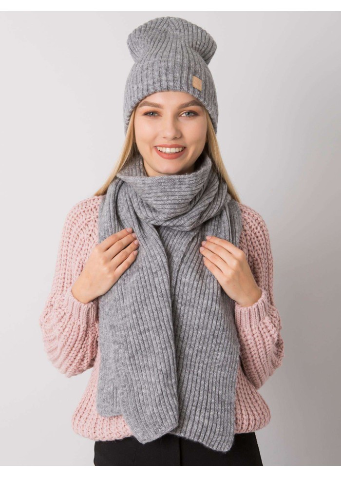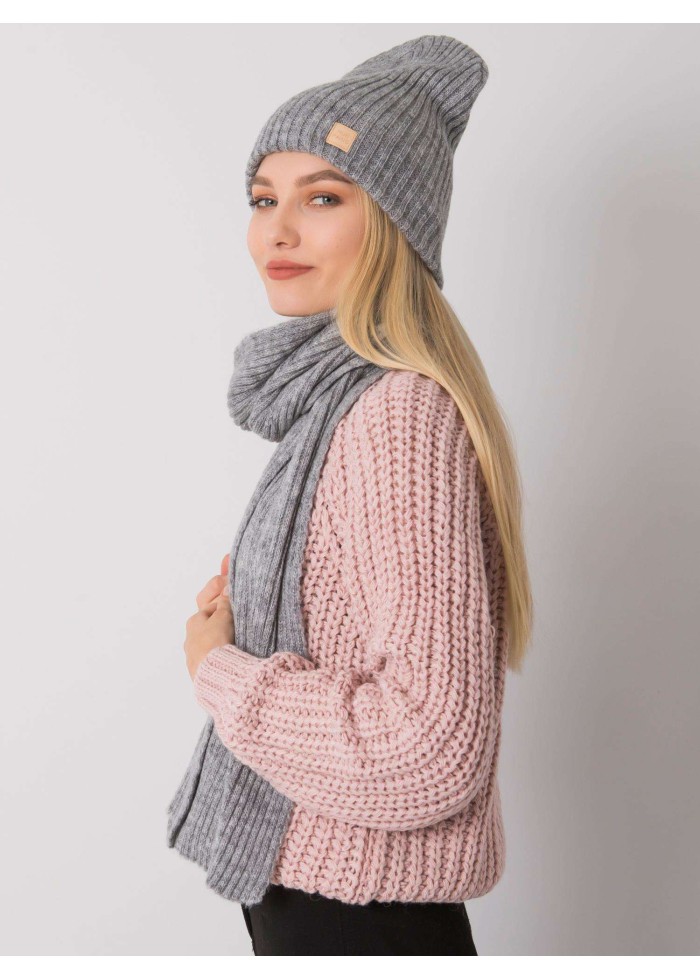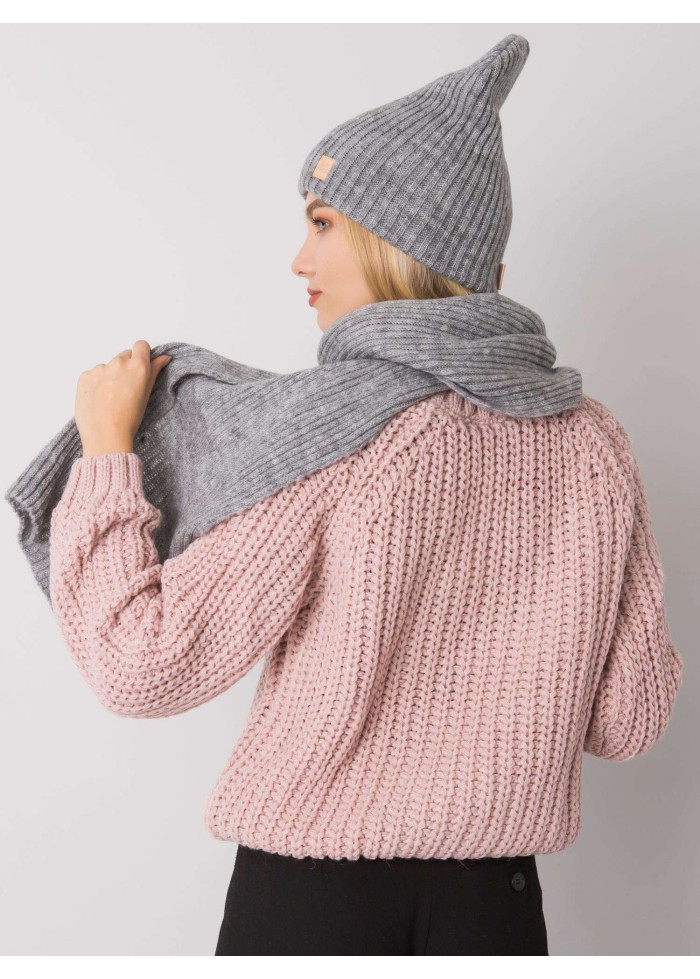 Sivý šál a čiapka komplet