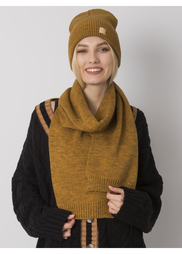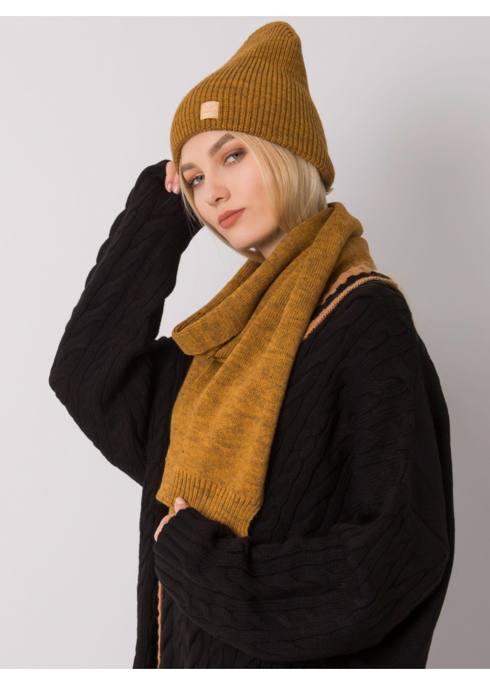 Karamelovo hnedý šál a čiapka komplet
