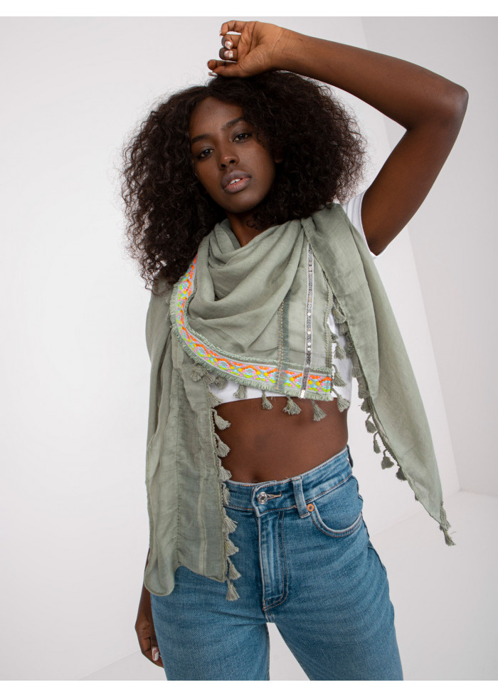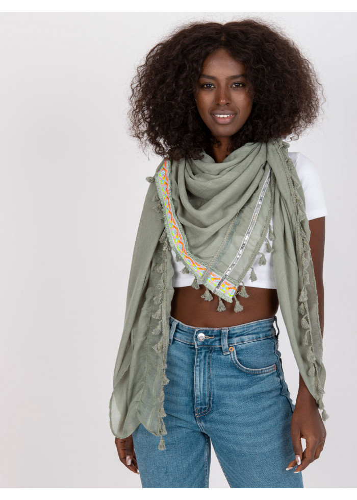 Dámska šatka, trojcípa šatka, šatka s lemovaním, spôsob prania: pranie v práčke na 30°c, materiál: 70% polyester, 30% viskóza, rozmery: 140 x 140.