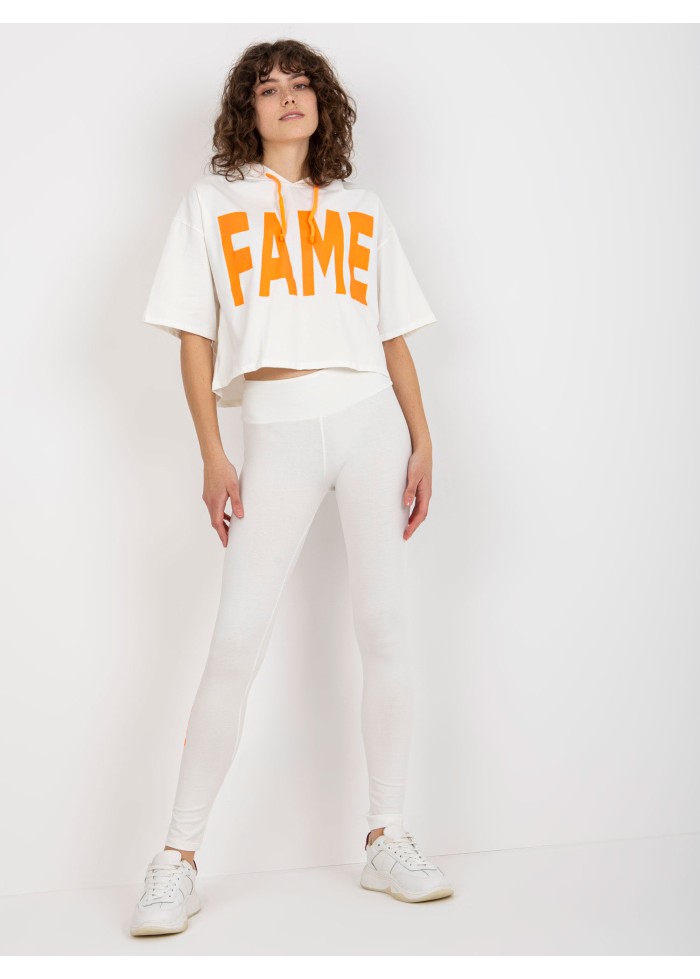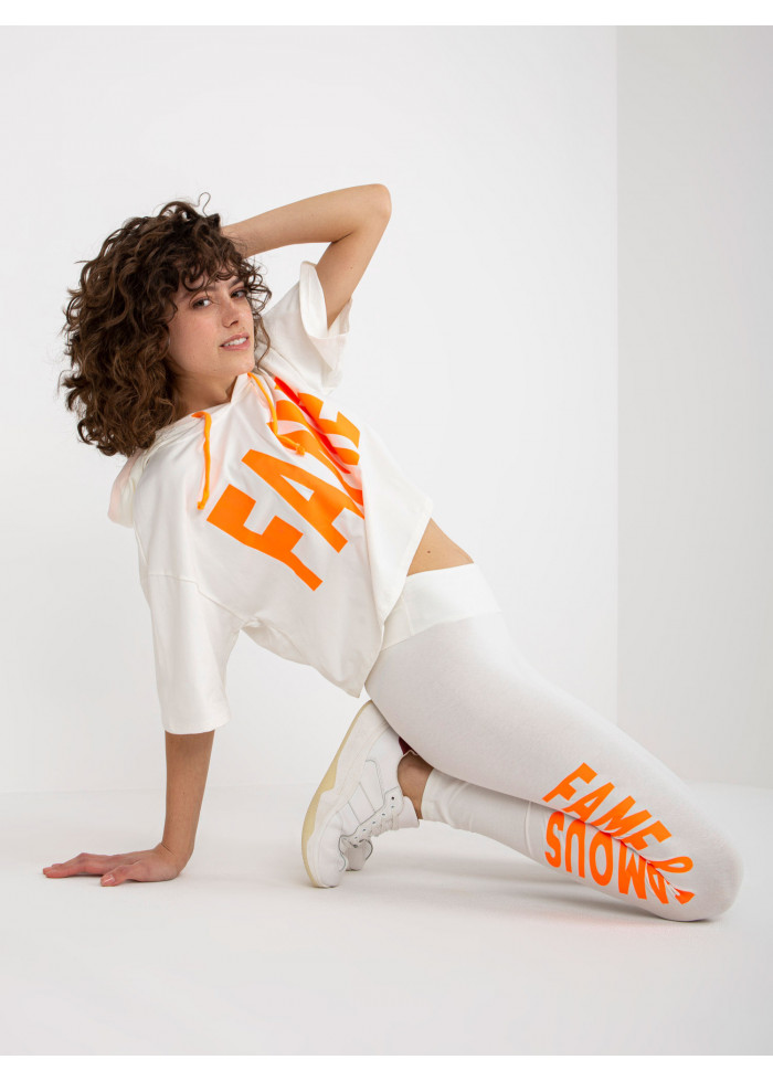 Dámska súprava, tričko s kapucňou, kontrastné šnúrky na kapucni, ozdobná potlač, krátky rukáv, crop top strih, legíny s vysokým pásom, ozdobná potlač na nohavici, univerzálna veľkosť, miery modelky: výška: 173 cm, prsia: 78 cm, pás: 60 cm, boky: 90 cm, rozmer produktu meraného na plocho:, šírka pod plecami: 54 cm, dĺžka rukáva: 26 cm, celková dĺžka: 48 cm, šírka nohavíc v páse: 31 cm, výška sedu: 26 cm, celková dĺžka: 96 cm.
