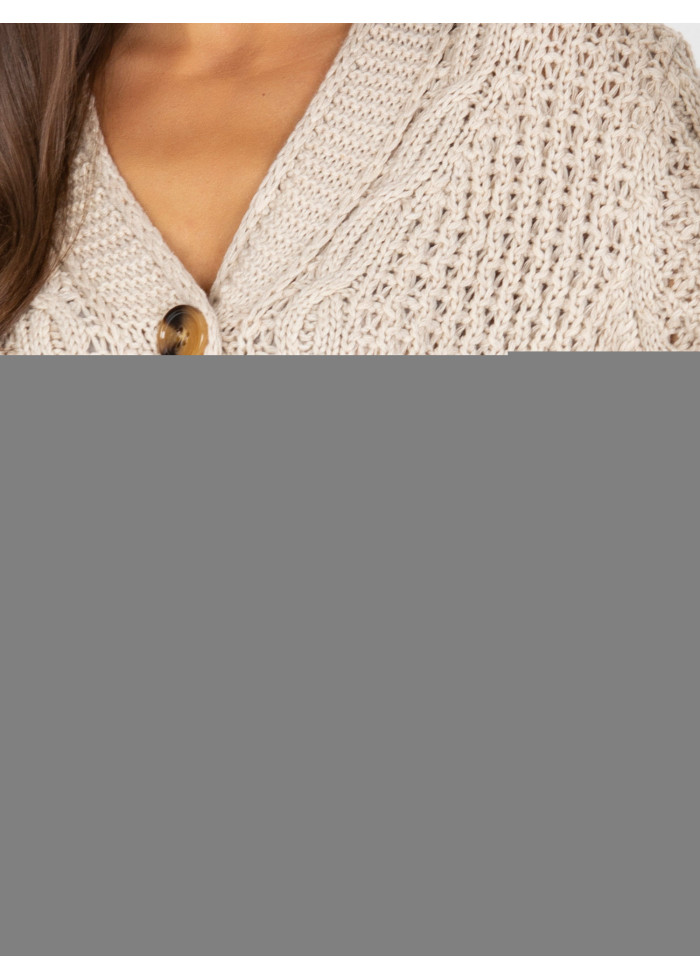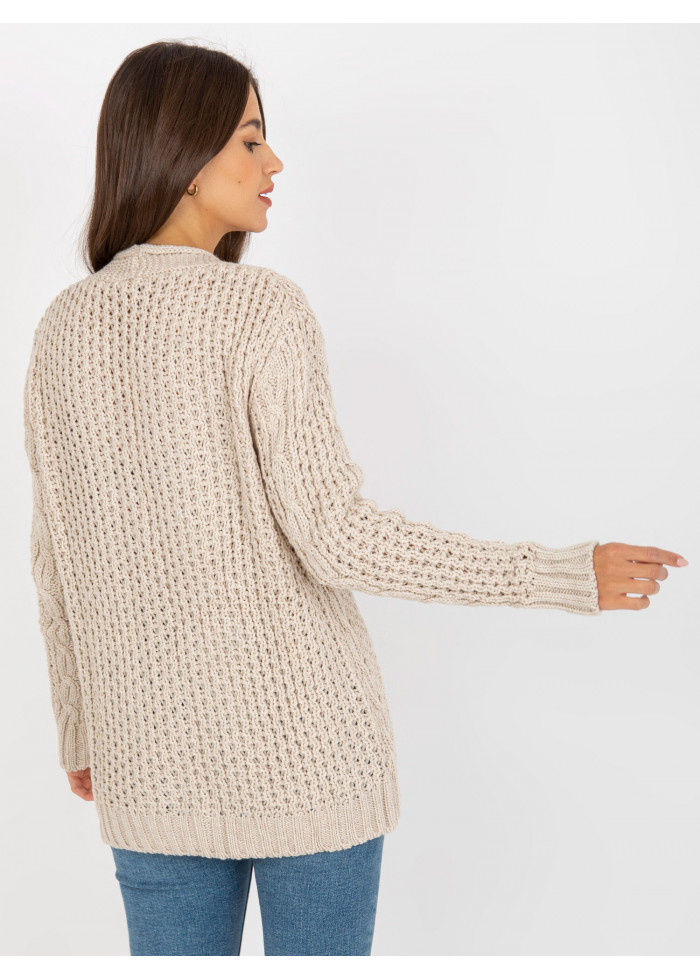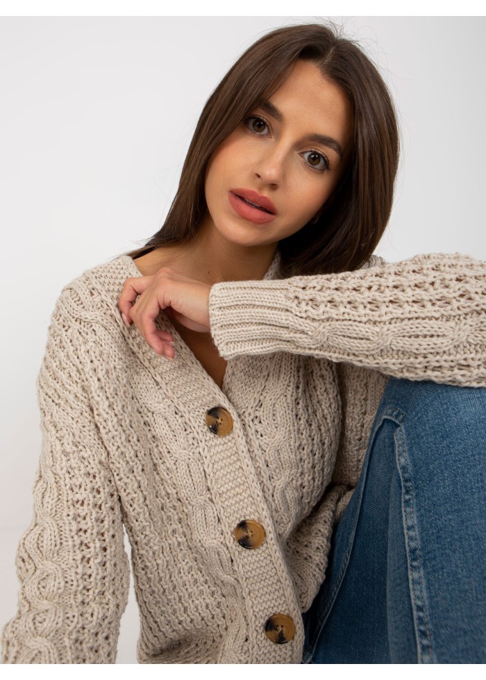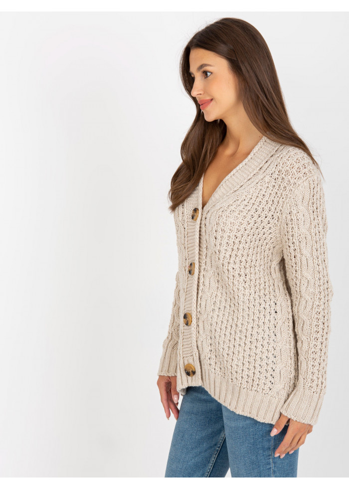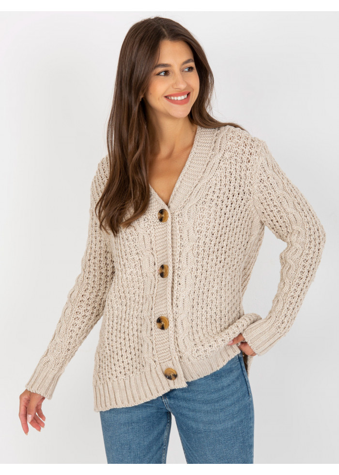 Dámsky pletený sveter, zapínanie na gombíky, univerzálna veľkosť, dekolt s výstrihom v tvare v, miery modelky: výška: 172 cm, prsia: 88 cm, pás: 63 cm, boky: 92 cm, rozmer produktu meraného na plocho:, šírka pod plecami: 60 cm, dĺžka rukáva: 61 cm, celková dĺžka: 60 cm.