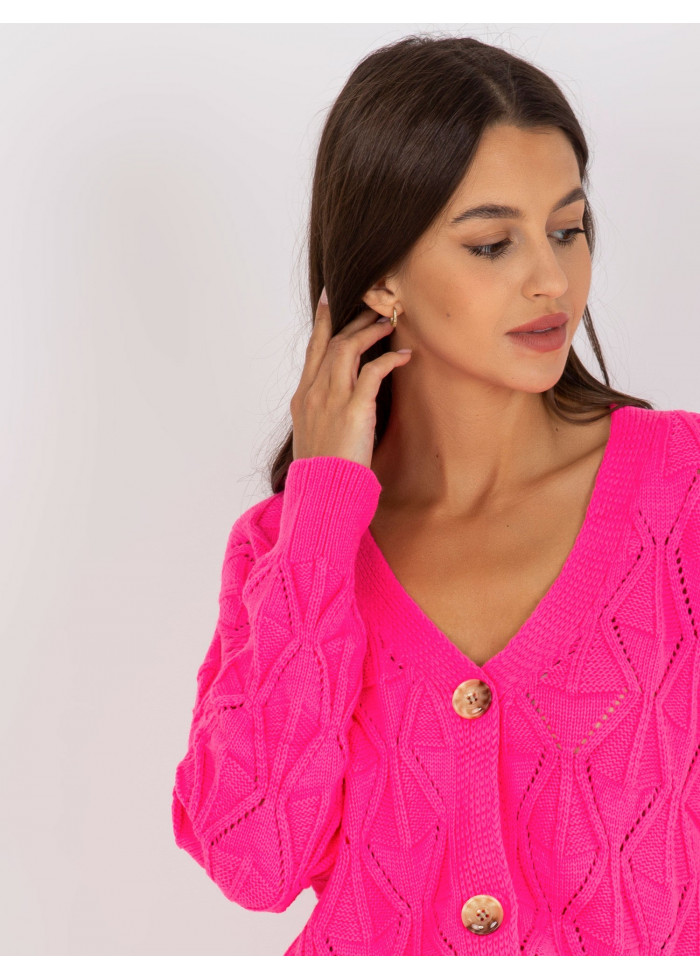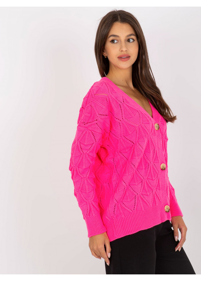 Dámsky pletený sveter, zapínanie na gombíky, univerzálna veľkosť, miery modelky: výška: 172 cm, prsia: 88 cm, pás: 63 cm, boky: 92 cm, rozmer produktu meraného na plocho:, šírka pod plecami: 56 cm, dĺžka rukáva: 55 cm, celková dĺžka: 63 cm.