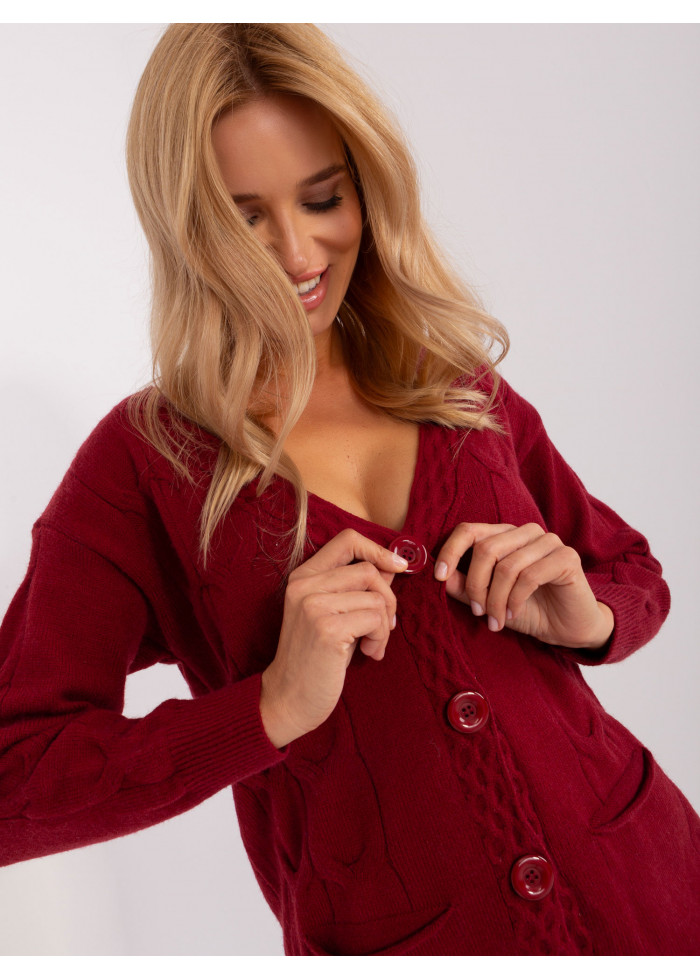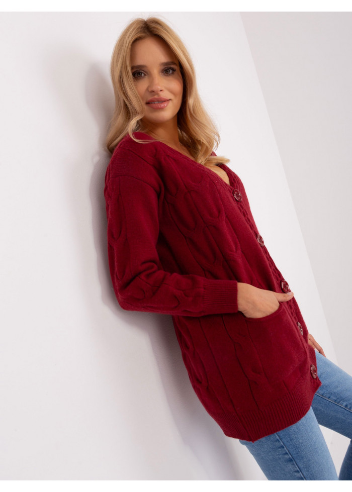 Dámsky klasický sveter, výstrih do v, zapínanie na gombíky, pletený vzor, univerzálna veľkosť, miery modelky: výška: 172 cm, prsia: 88 cm, pás: 63 cm, boky: 92 cm, rozmer produktu meraného na plocho:, šírka pod plecami: 58 cm, dĺžka rukáva: 58 cm, celková dĺžka: 74 cm.