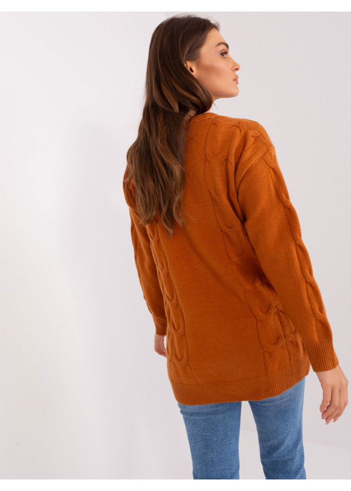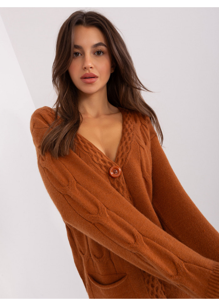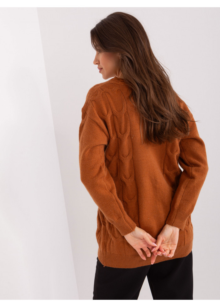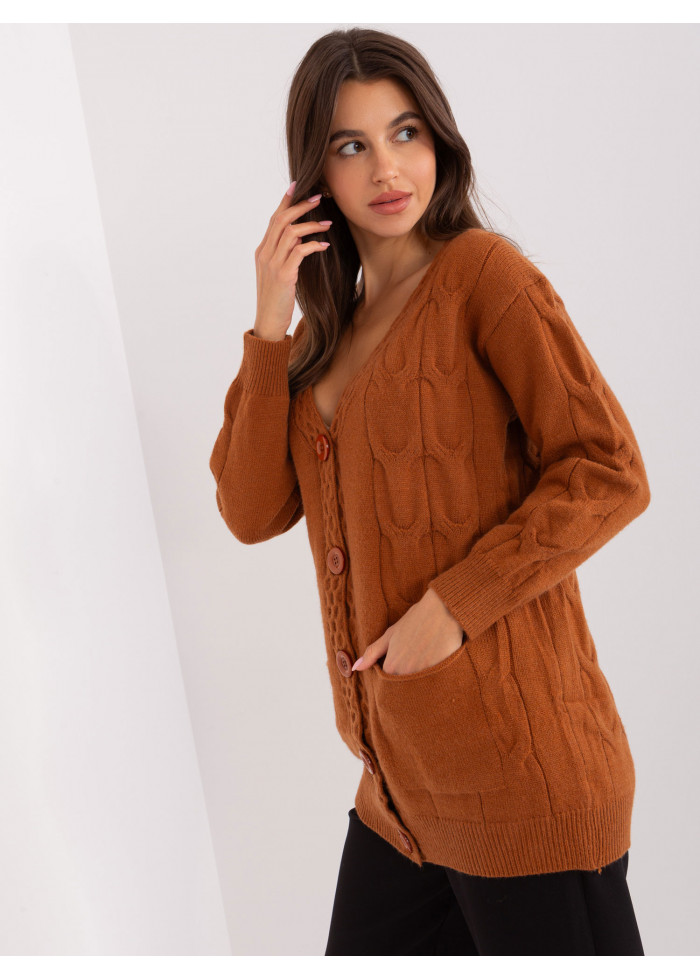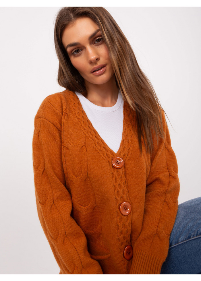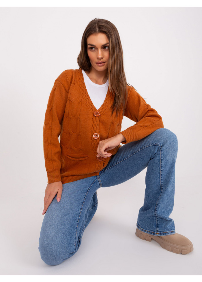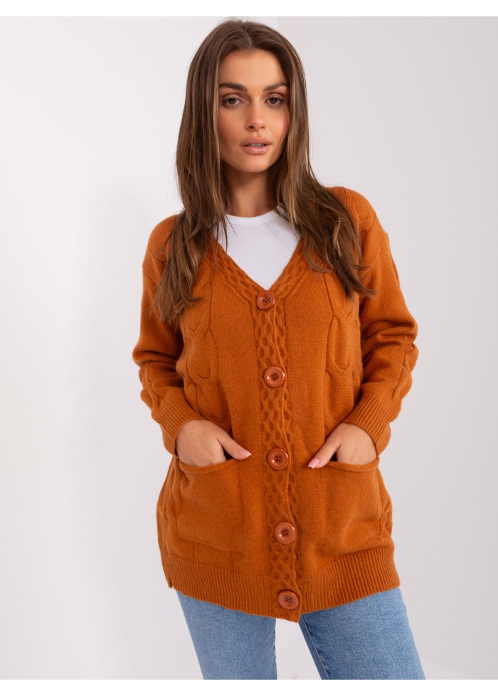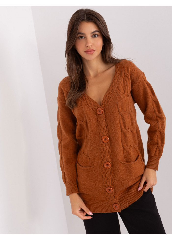 Dámsky klasický sveter, výstrih do v, zapínanie na gombíky, pletený vzor, univerzálna veľkosť, miery modelky: výška: 172 cm, prsia: 88 cm, pás: 63 cm, boky: 92 cm, rozmer produktu meraného na plocho:, šírka pod plecami: 58 cm, dĺžka rukáva: 58 cm, celková dĺžka: 74 cm.