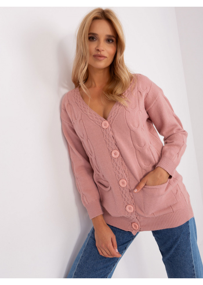 Dámsky klasický sveter, výstrih do v, zapínanie na gombíky, pletený vzor, univerzálna veľkosť, miery modelky: výška: 172 cm, prsia: 88 cm, pás: 63 cm, boky: 92 cm, rozmer produktu meraného na plocho:, šírka pod plecami: 58 cm, dĺžka rukáva: 58 cm, celková dĺžka: 74 cm.