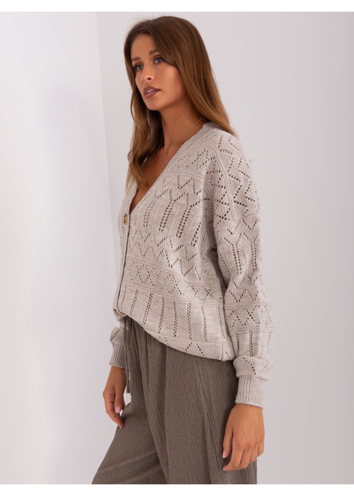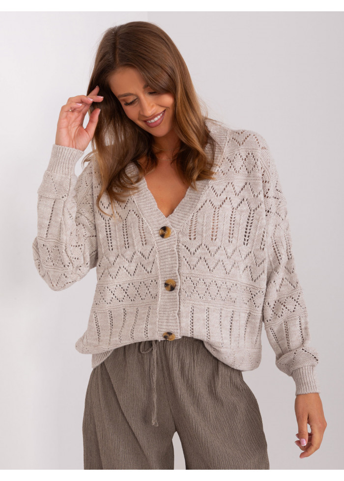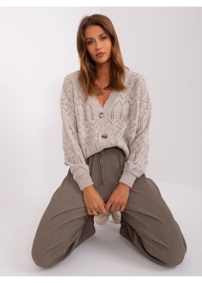 Dámsky klasický sveter, výstrih do v, zapínanie na gombíky, dierkovaný vzor, univerzálna veľkosť, miery modelky: výška 176 cm, prsia 85 cm, pás 64 cm, boky 92 cm, rozmer produktu meraného na plocho:, šírka pod plecami: 70 cm, dĺžka rukáva: 58 cm, celková dĺžka: 60 cm.