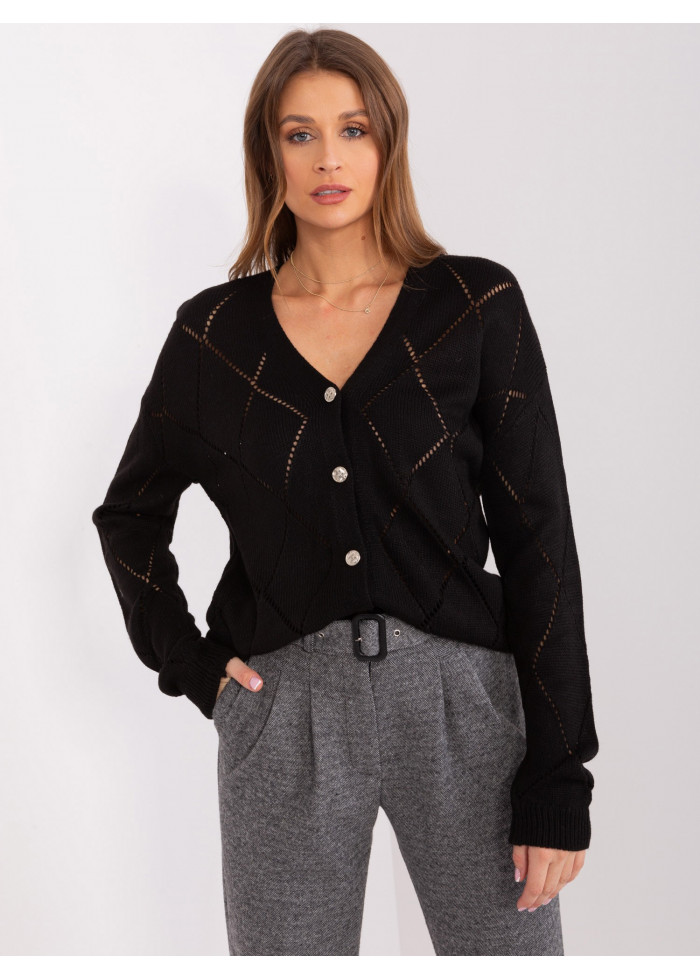 Dámsky klasický sveter, zapínanie na gombíky, výstrih do v, univerzálna veľkosť, miery modelky: výška 176 cm, prsia 85 cm, pás 64 cm, boky 92 cm, rozmer produktu meraného na plocho:, šírka pod plecami: 53 cm, dĺžka rukáva: 53 cm, celková dĺžka: 62 cm.