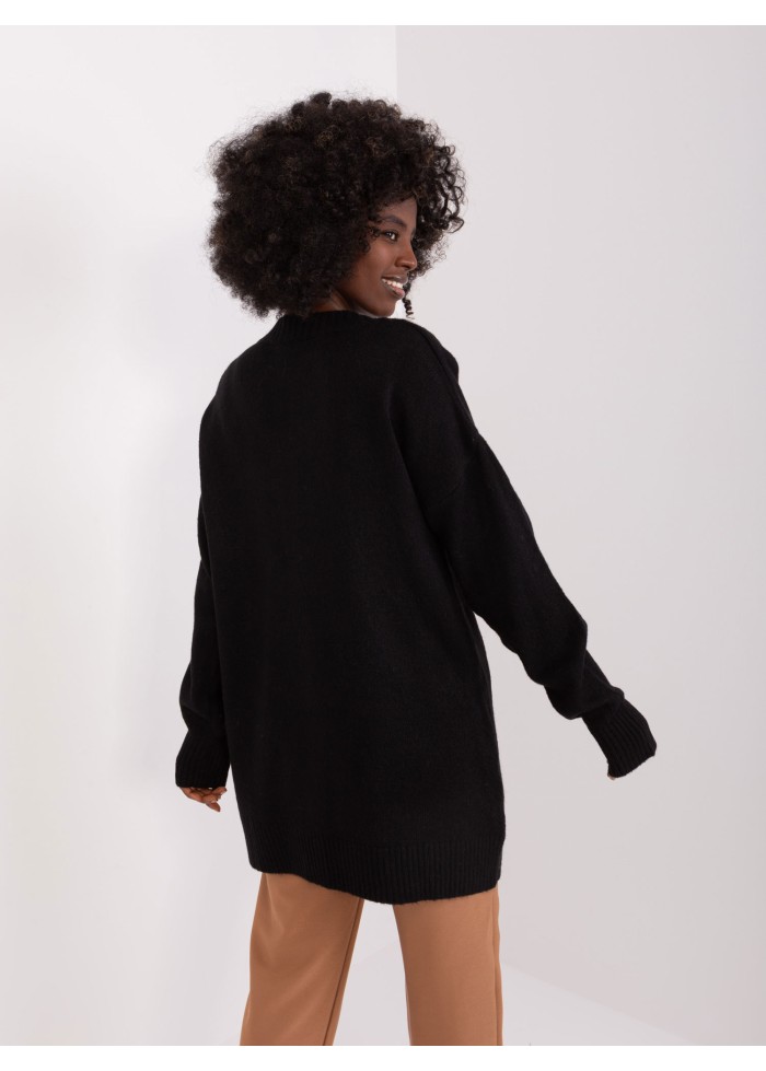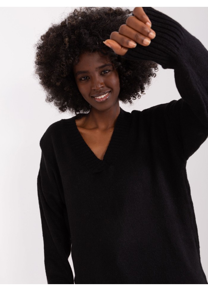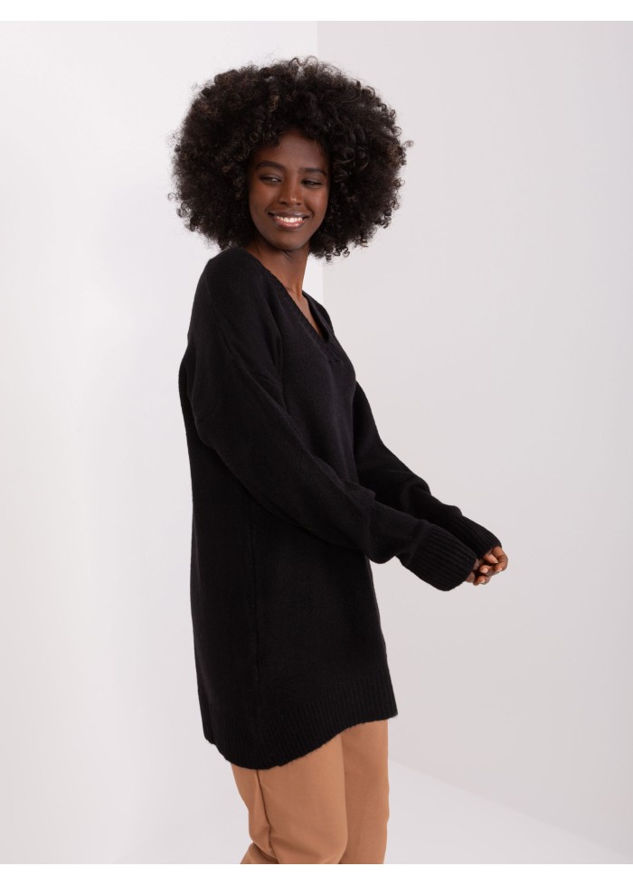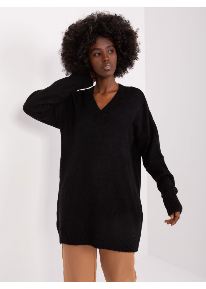 Dámsky sveter, predĺžený pulóver, jemný úplet, výstrih do v, lémy na koncoch rukávov v spodnej časti a pri krku, univerzálna veľkosť, miery modelky: výška: 168 cm, prsia: 82 cm, pás: 62 cm, boky: 93 cm, rozmer produktu meraného na plocho:, šírka pod plecami: 59 cm, dĺžka rukáva: 60 cm, celková dĺžka: 72 cm.