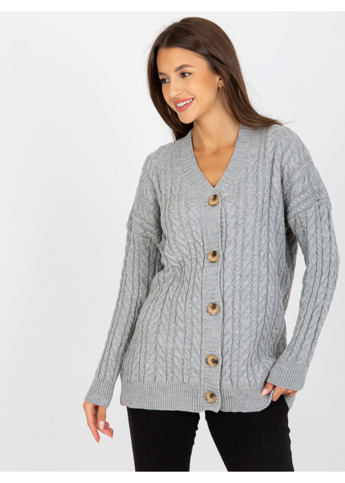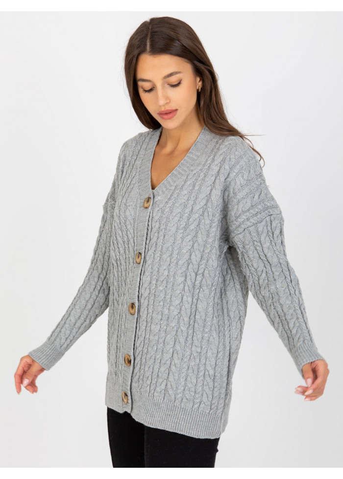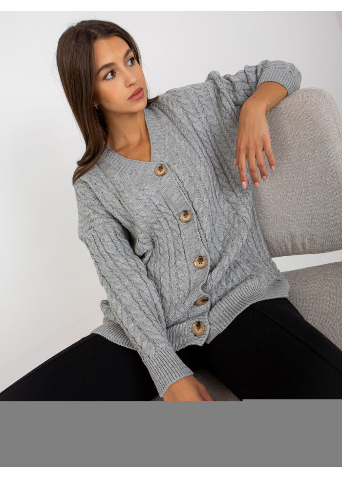 Dámsky sveter na gombíky, výstrih do v, pletený vzor, spôsob prania: ručné pranie, materiál: 100% akryl, univerzálna veľkosť, miery modelky: výška: 172 cm, prsia: 88 cm, pás: 63 cm, boky: 92 cm, rozmer produktu meraného na plocho:, šírka pod plecami: 60 cm, dĺžka rukáva: 56 cm, celková dĺžka: 70 cm.