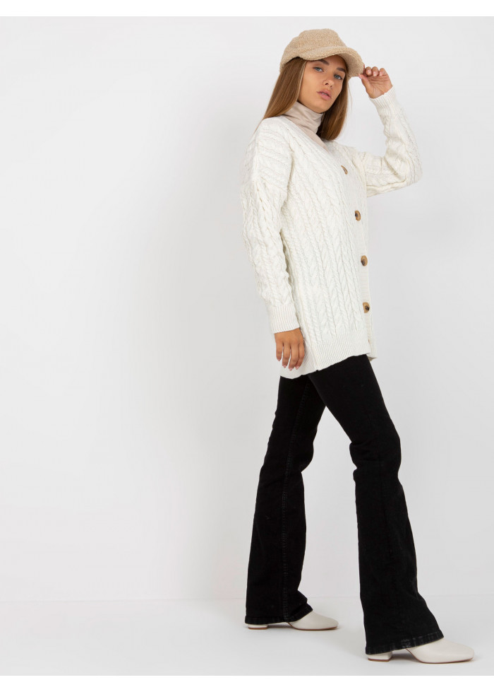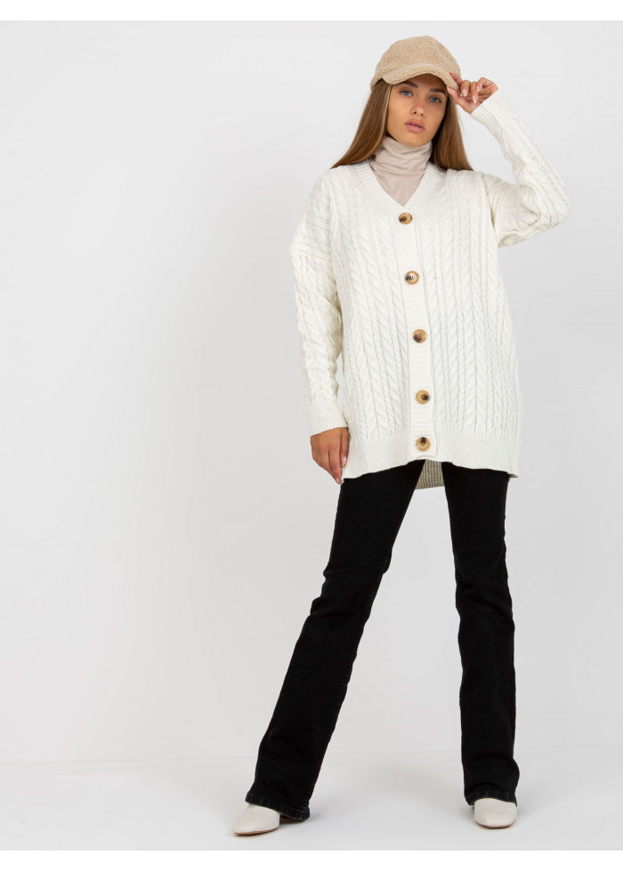 Dámsky sveter na gombíky, výstrih do v, pletený vzor, spôsob prania: ručné pranie, materiál: 100% akryl, univerzálna veľkosť, miery modelky: výška: 172 cm, prsia: 88 cm, pás: 63 cm, boky: 92 cm, rozmer produktu meraného na plocho:, šírka pod plecami: 60 cm, dĺžka rukáva: 56 cm, celková dĺžka: 70 cm.