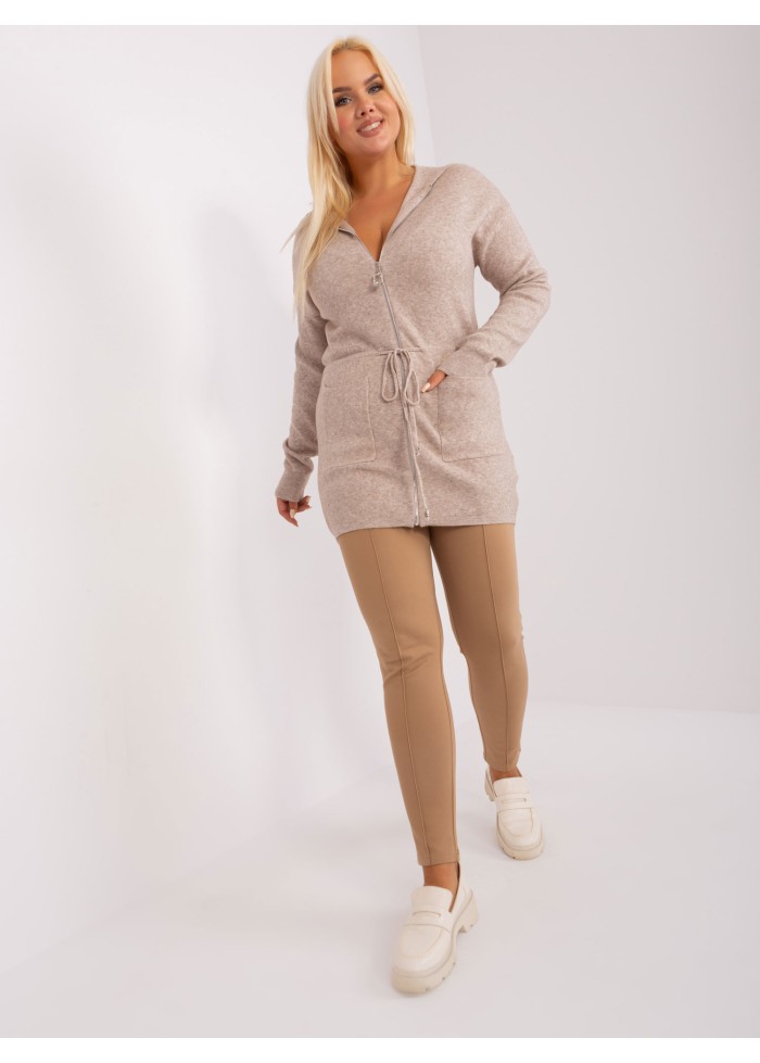 Sveter s kapucňou, zapínanie na zips, ozdobná šnúrka v páse, 2 vrecká, jemný úplet, modelka má na sebe veľkosť xl/xxl. miery modelky: výška: 172 cm, prsia: 103 cm, pás: 73 cm, boky: 103 cm, rozmer produktu, meraného na plocho, vo veľkosti xl/xxl:, šírka pod plecami: 64 cm, dĺžka rukáva: 65 cm, celková dĺžka: 84 cm.