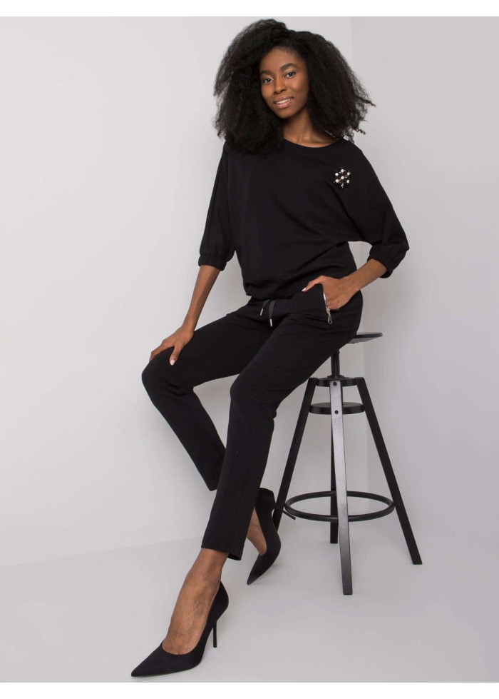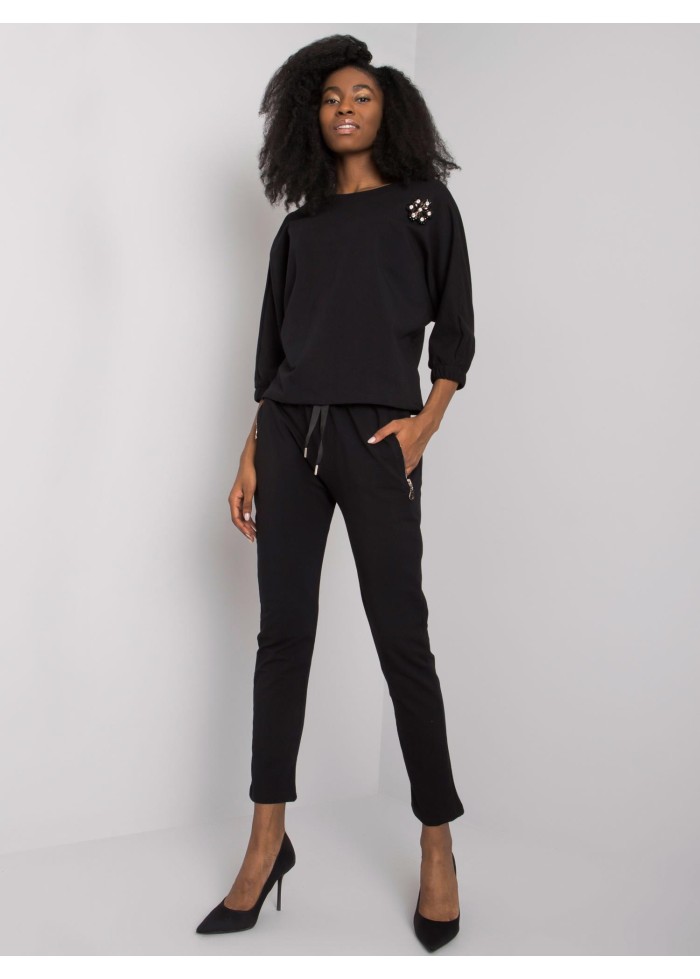 Jemná tepláková súprava, výrazný výstrih na chrbte, aplikácia v prednej časti, 3/4 rukávy, sťahovacia guma na koncoch rukávov, úzky strih nohavíc, v pase guma a šnúrky, 2 vrecká na zips po bokoch, 2 vrecká na zadnej časti, spôsob prania: pranie v práčke na 30°c, materiál: 90% bavlna, 10% elastan, modelka má na sebe veľkosť s/m. rozmery modelky: výška 177 cm, prsia 86 cm, pás 61 cm, boky 91 cm., rozmer produktu meraného na plocho, vo veľkosti s/m:, šírka pod plecami: 56 cm, celková dĺžka mikiny: 59 cm, dĺžka rukávov: 45 cm, šírka nohavíc v páse: 36 cm, dĺžka nohavíc: 99 cm.