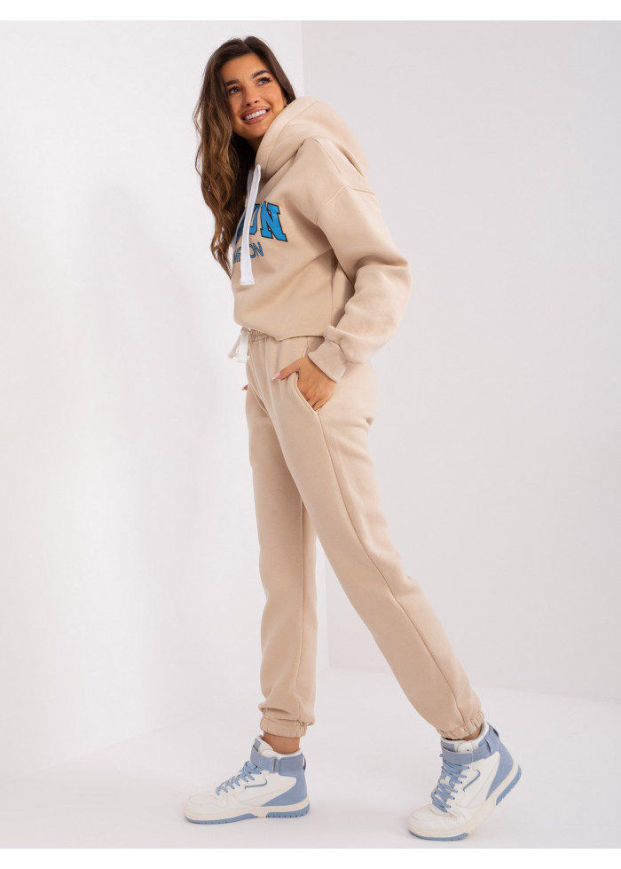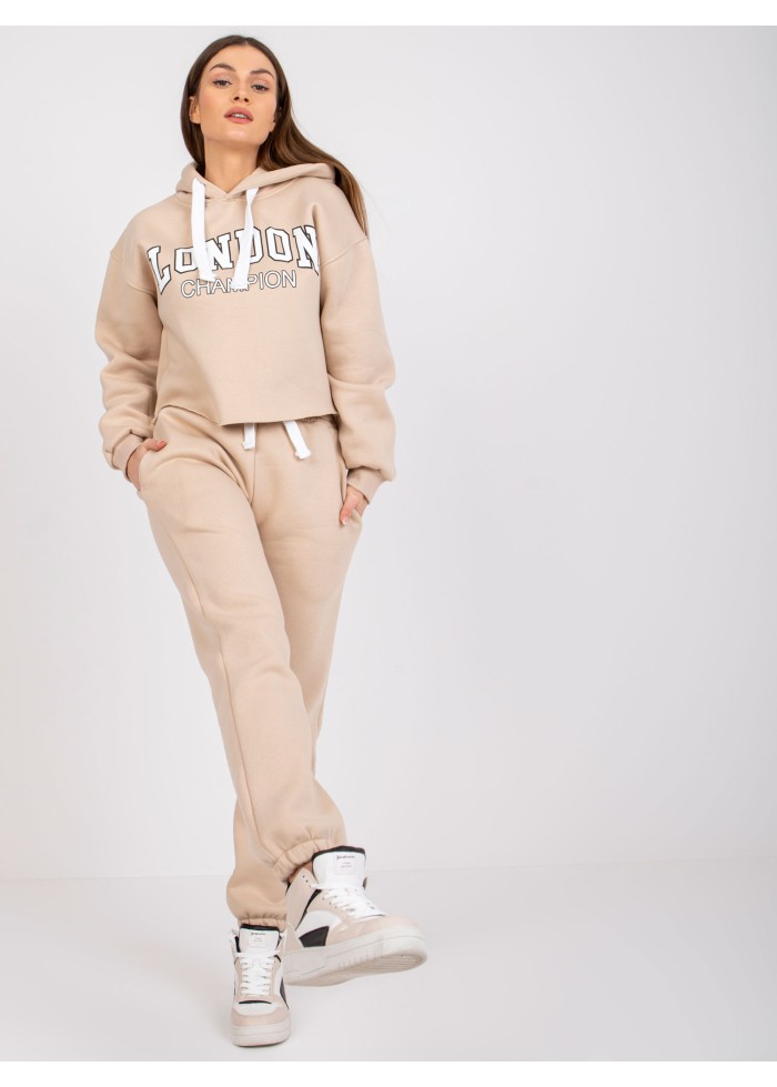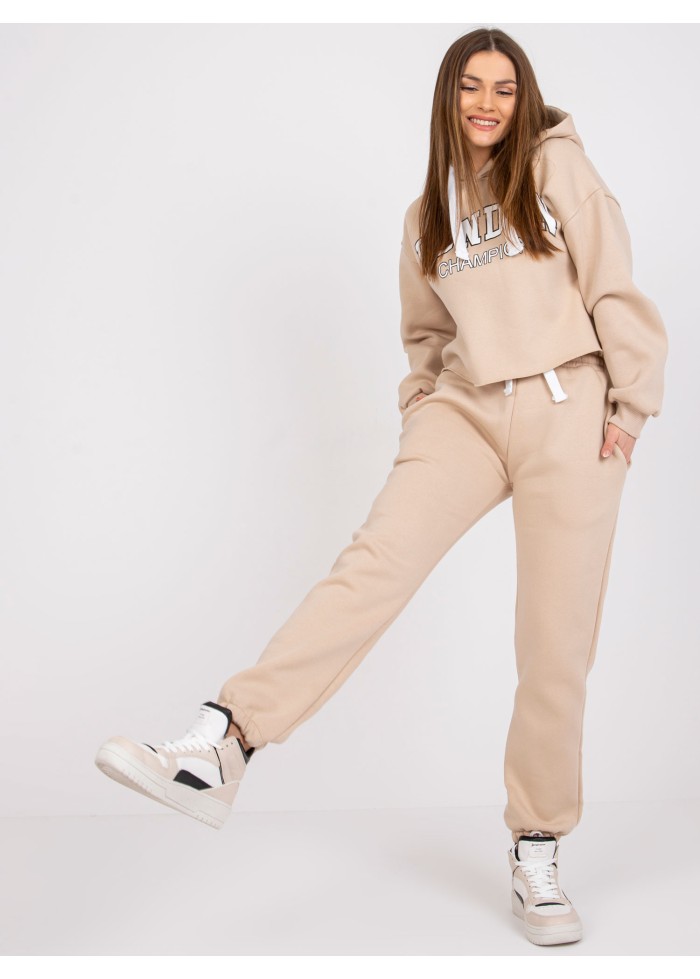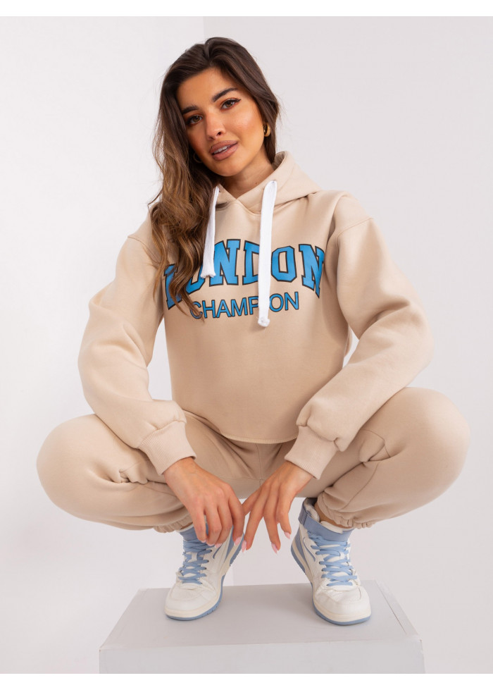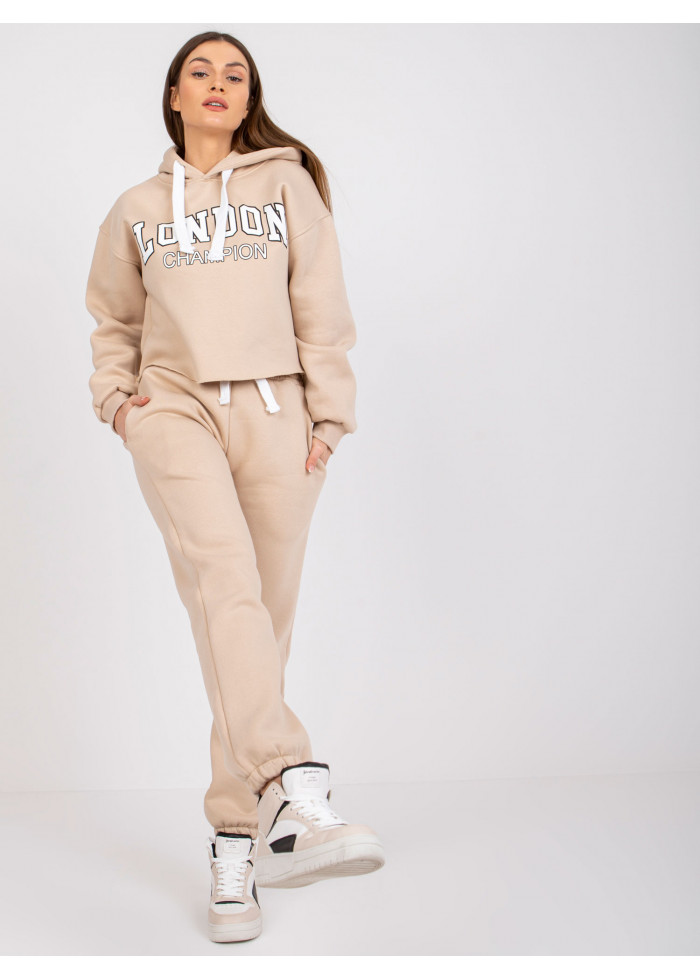 Dámska tepláková súprava, basic mikina s kapucňou, ozdobné šnúrky na kapucni, ozdobná potlač, lémy na konci rukávov, dlhé nohavice na gumu v páse, guma na spodku nohavíc, 2 vrecká, univerzálna veľkosť, miery modelky: výška: 168 cm, prsia: 89 cm, pás: 60 cm, boky: 91 cm, rozmer produktu meraného na plocho:, šírka pod plecami: 54 cm, dĺžka rukáva: 61 cm, celková dĺžka: 49 cm, šírka nohavíc v páse: 35 cm,dĺžka nohavíc: 98 cm.
