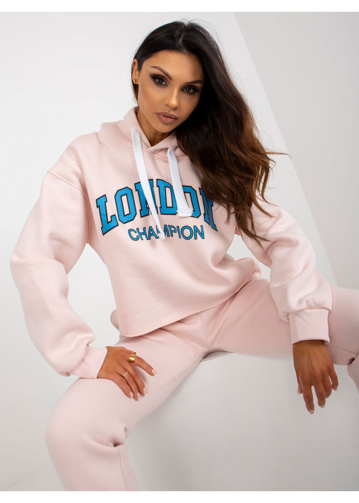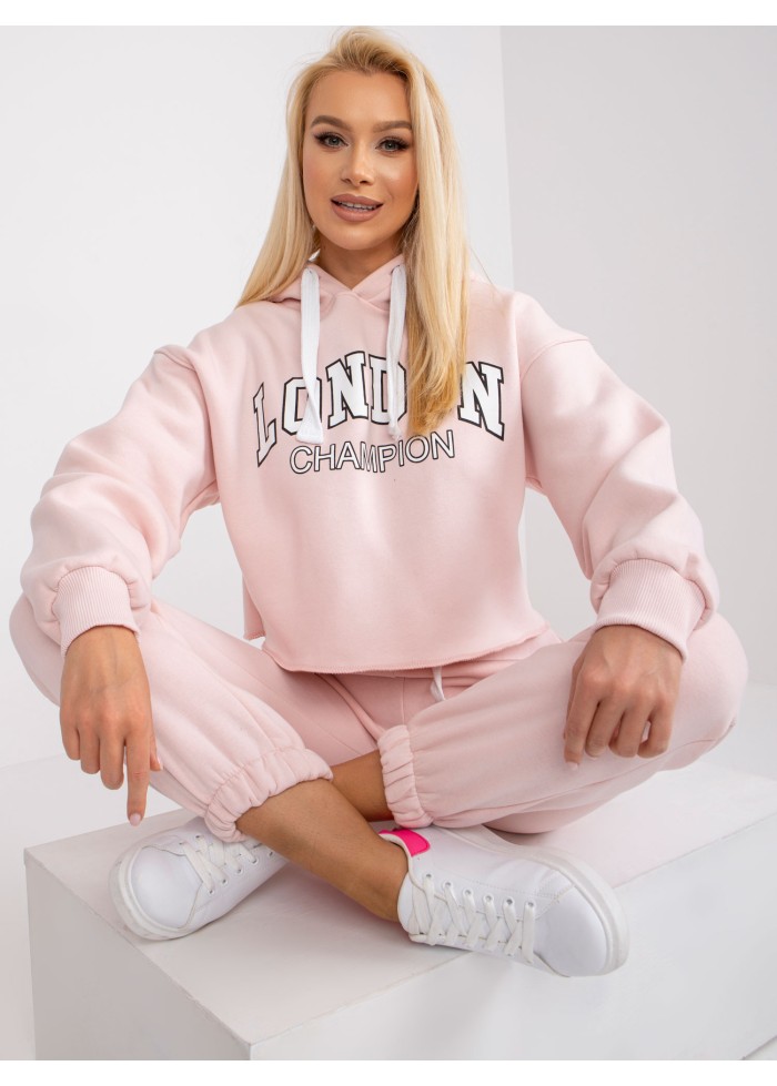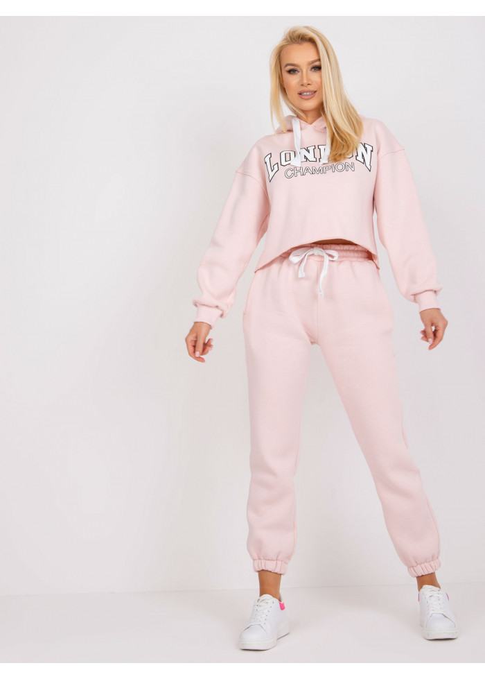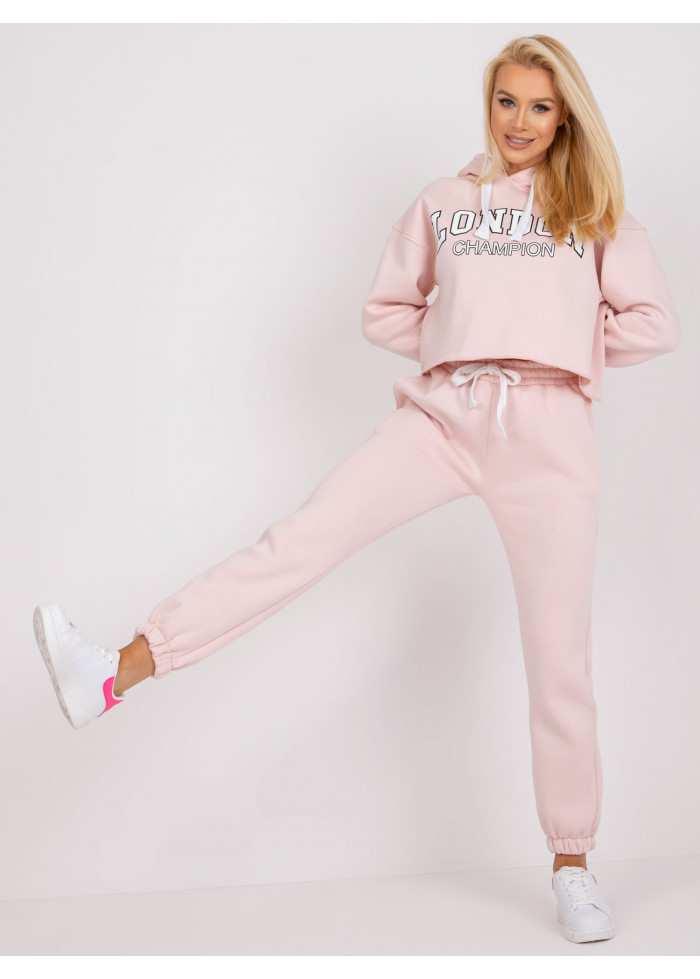 Dámska tepláková súprava, basic mikina s kapucňou, ozdobné šnúrky na kapucni, ozdobná potlač, lémy na konci rukávov, dlhé nohavice na gumu v páse, guma na spodku nohavíc, 2 vrecká, univerzálna veľkosť, miery modelky: výška: 168 cm, prsia: 89 cm, pás: 60 cm, boky: 91 cm, rozmer produktu meraného na plocho:, šírka pod plecami: 54 cm, dĺžka rukáva: 61 cm, celková dĺžka: 49 cm, šírka nohavíc v páse: 35 cm,dĺžka nohavíc: 98 cm.