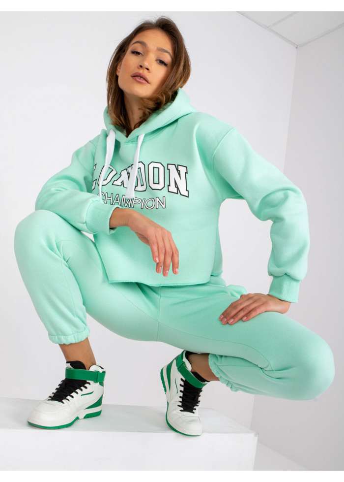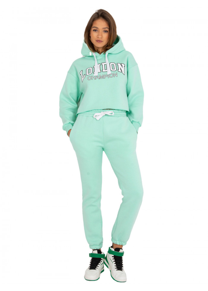Dámska tepláková súprava, basic mikina s kapucňou, ozdobné šnúrky na kapucni, ozdobná potlač, lémy na konci rukávov, dlhé nohavice na gumu v páse, guma na spodku nohavíc, 2 vrecká, univerzálna veľkosť, miery modelky: výška: 168 cm, prsia: 89 cm, pás: 60 cm, boky: 91 cm, rozmer produktu meraného na plocho:, šírka pod plecami: 54 cm, dĺžka rukáva: 61 cm, celková dĺžka: 49 cm, šírka nohavíc v páse: 35 cm,dĺžka nohavíc: 98 cm.